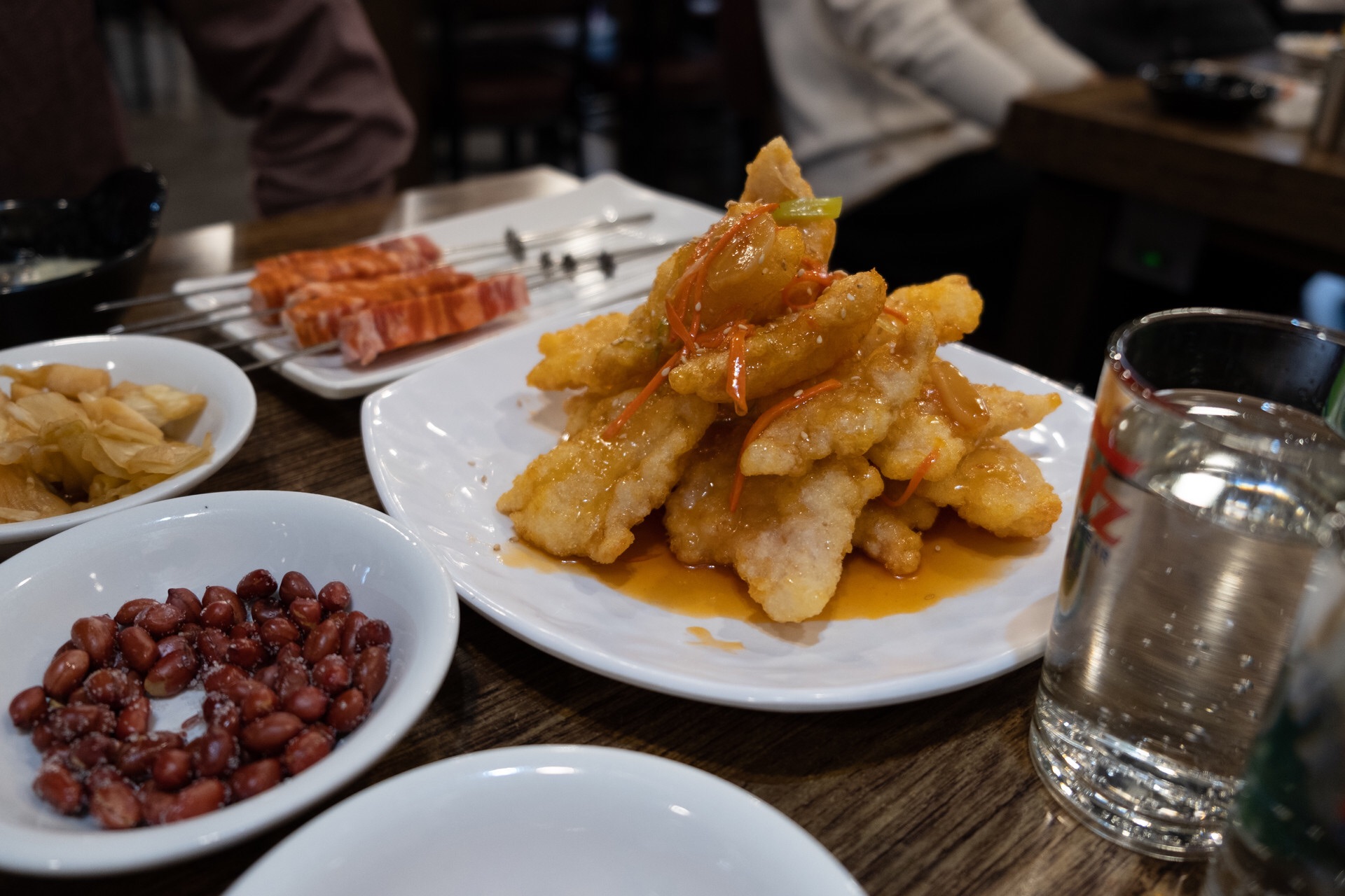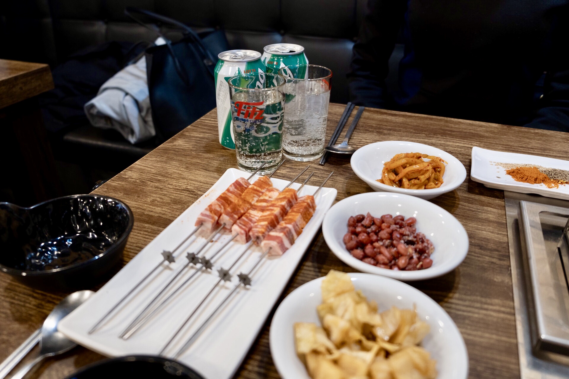우리는 양꼬치와 꿔바로우를 주문했다.