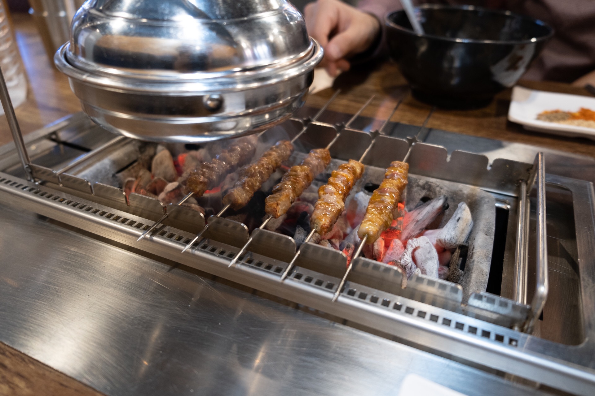 불 위에 양꼬치를 올렸다.