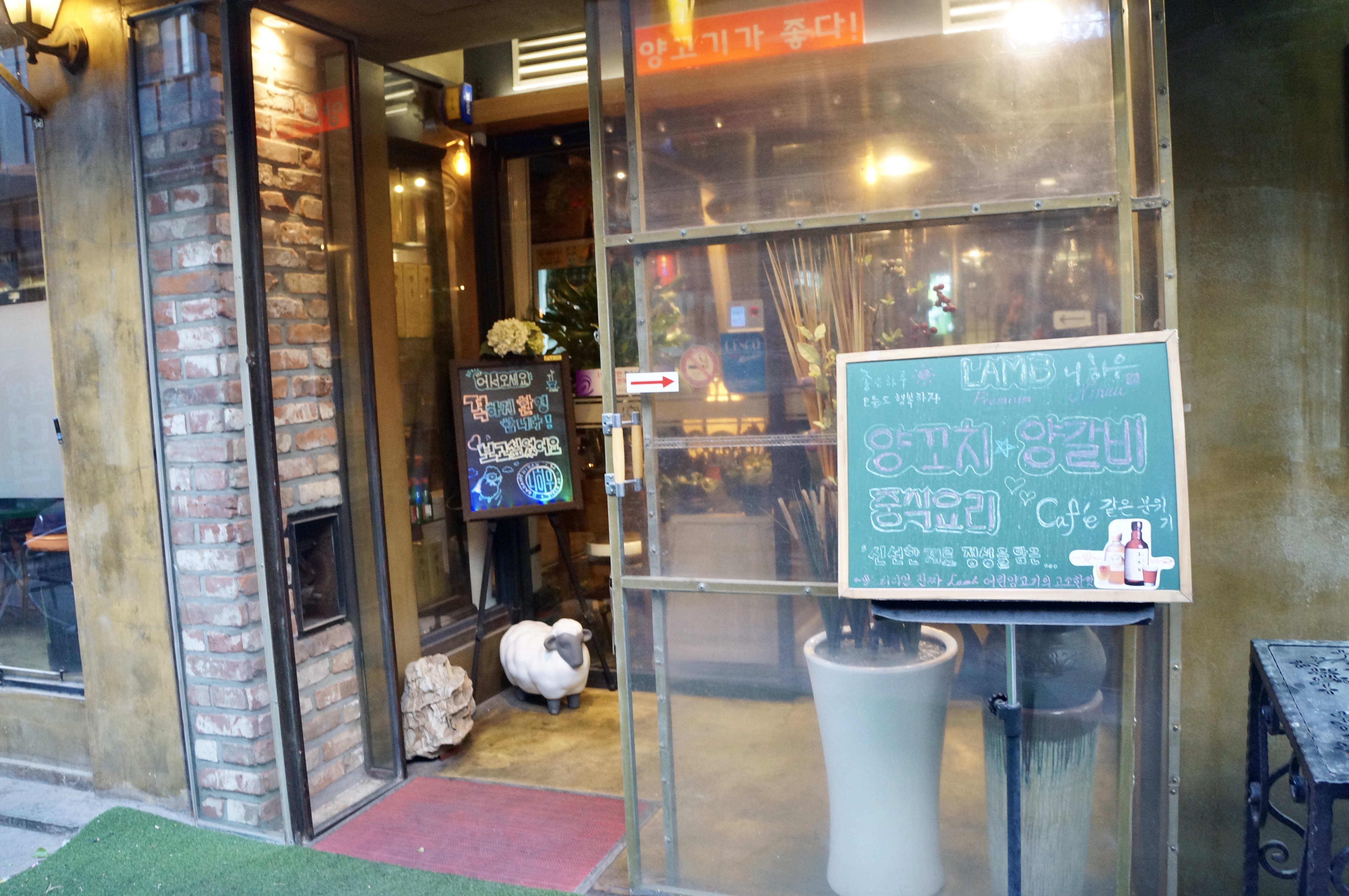 귀여운 양 한마리가 문앞에서 우리를 반겼다.