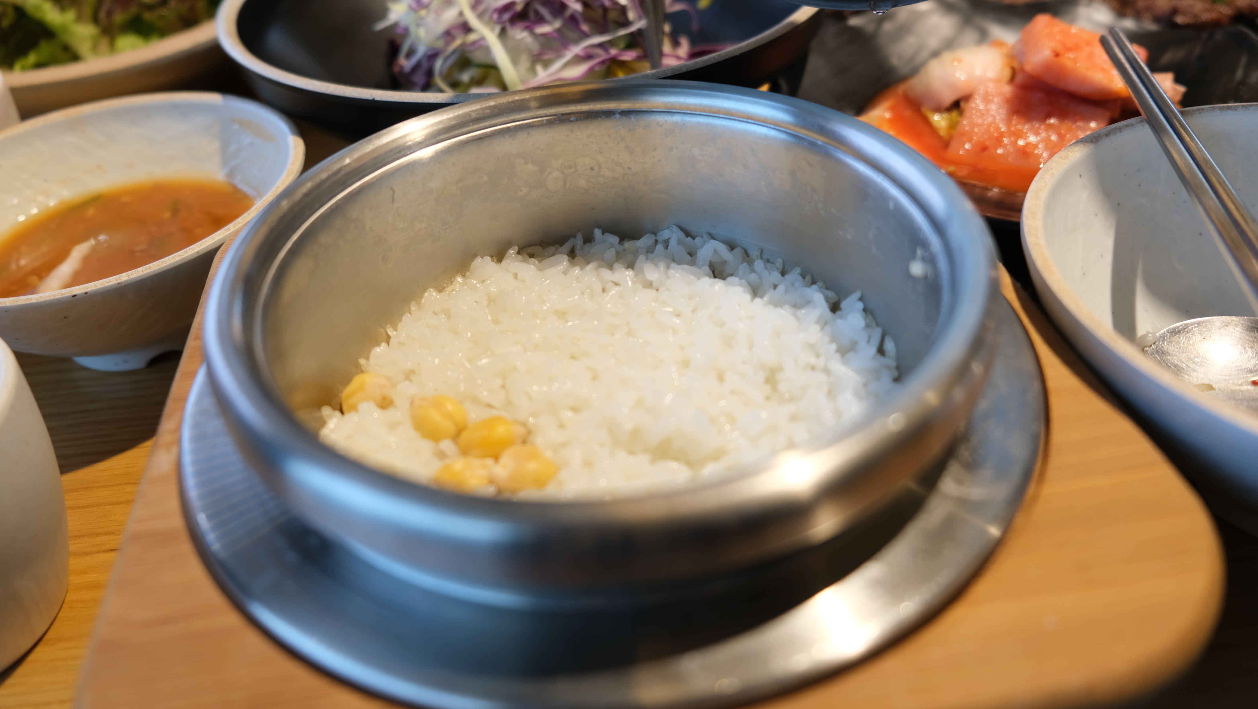 돌솥밥 안에 병아리 콩이 들어가 있었다.