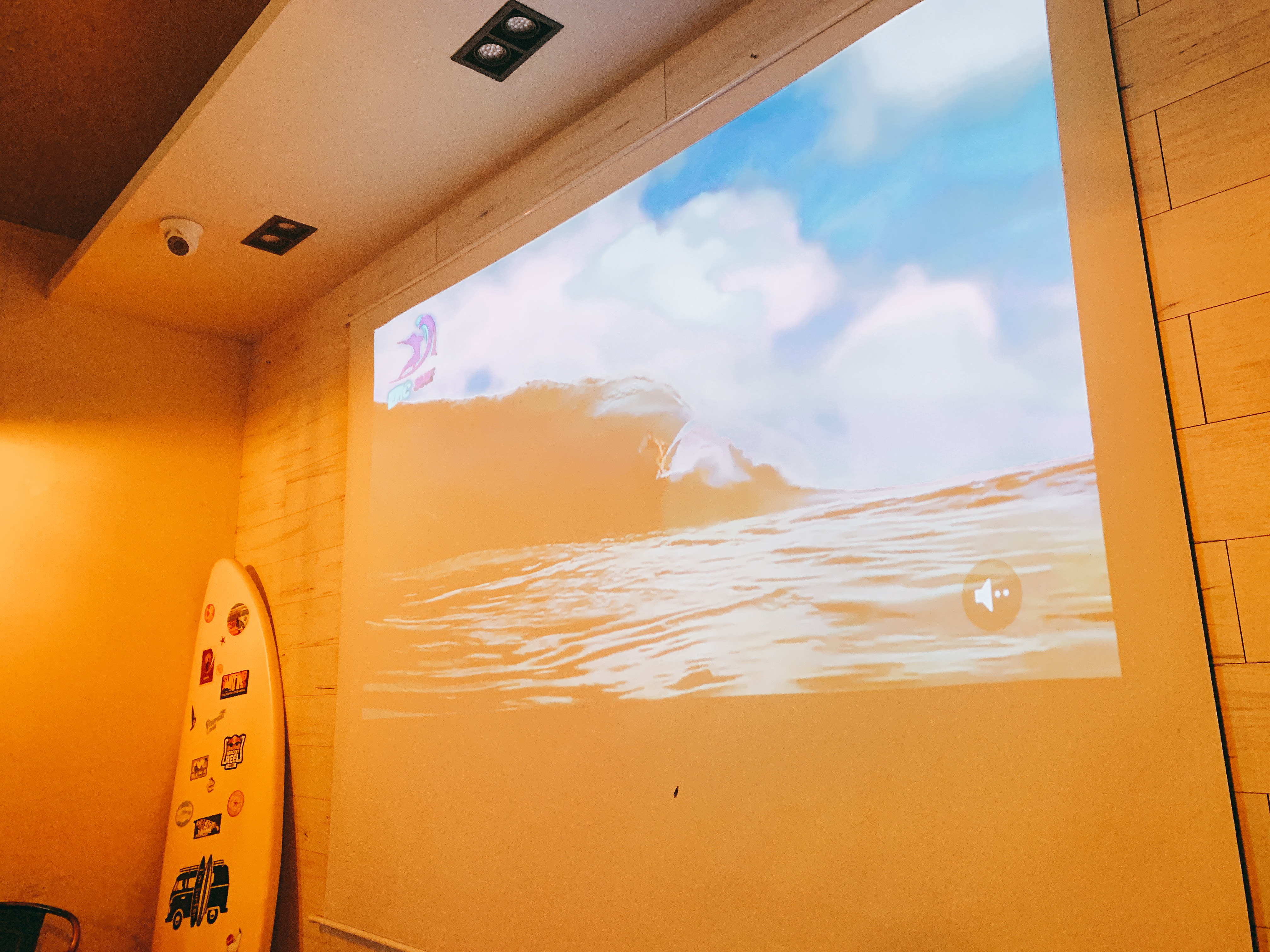 가게에 있는 스크린에도 계속 골드코스트 화면이 나왔다.