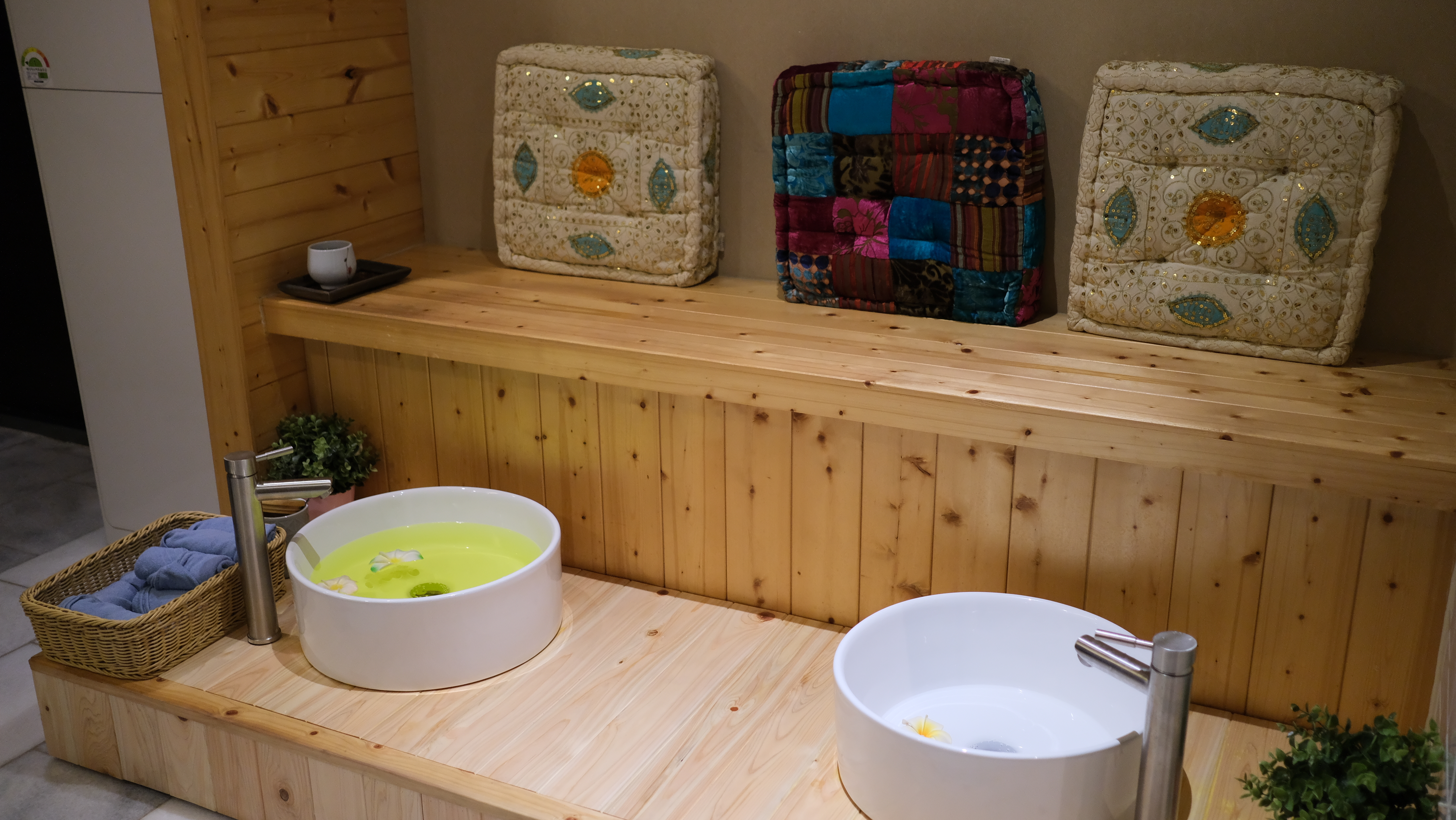 옷을 갈아입고 나오면 발을 먼저 씻어줍니다.