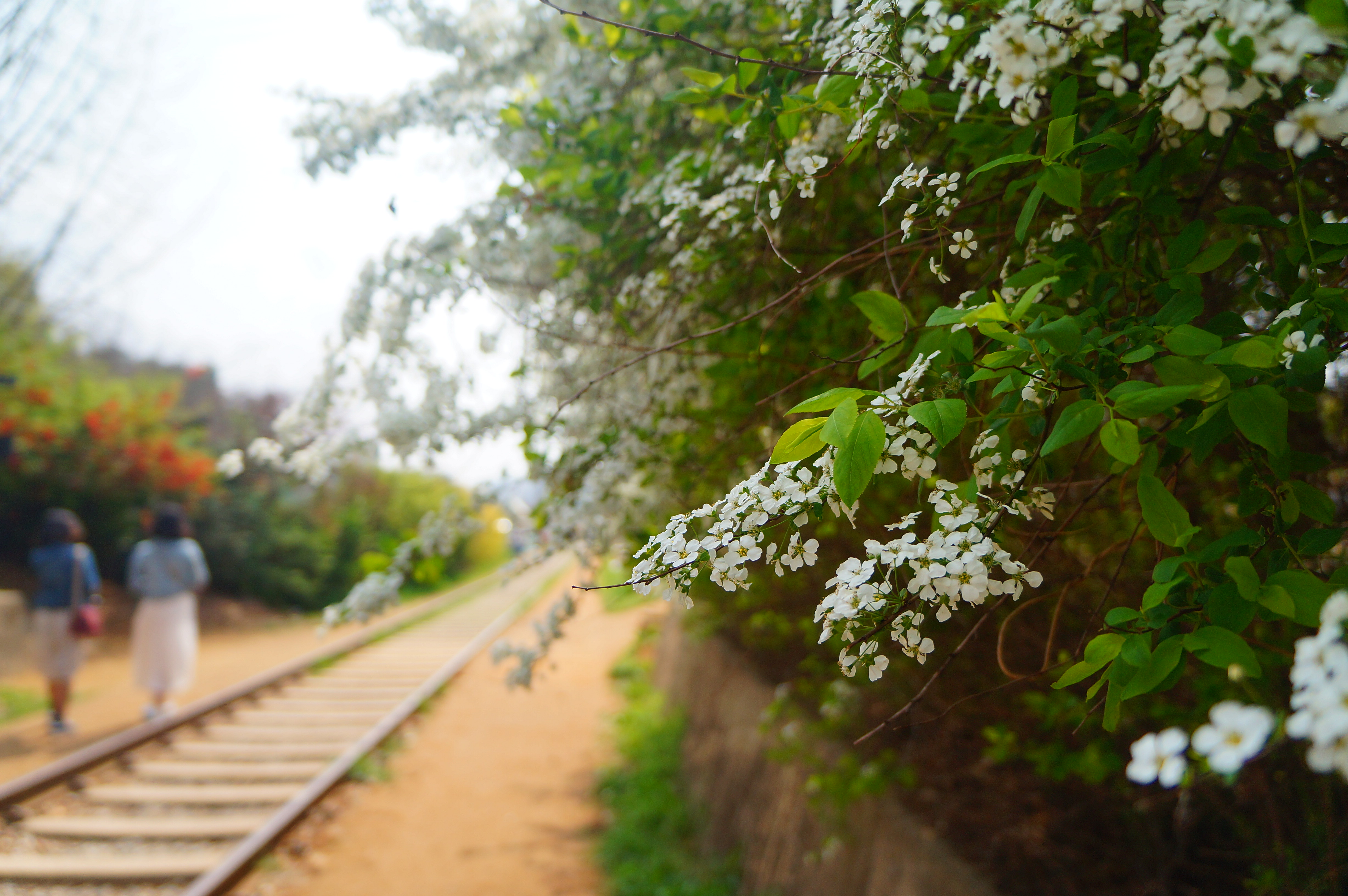 철길 옆으로 꽃이 폈다.