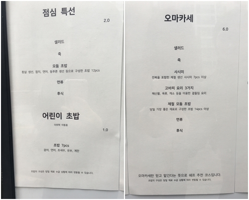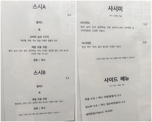 초밥과 사시미의 제공 피스가 정해져 있는 모양이지만