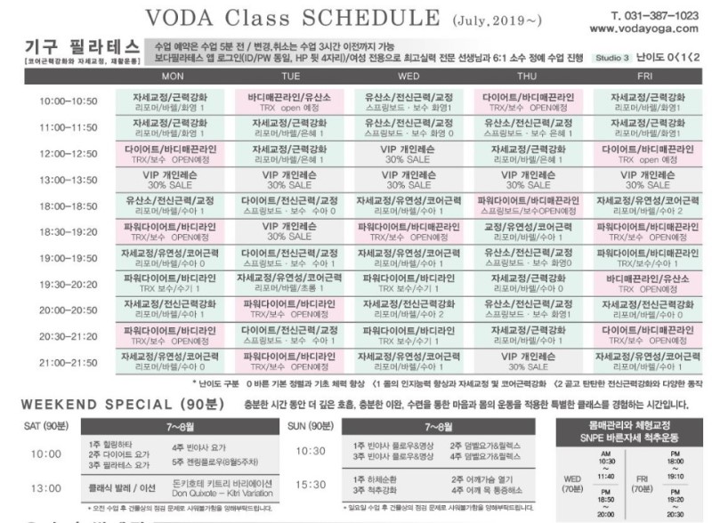 수업이 요가, 발레, 발레필라테스 등등