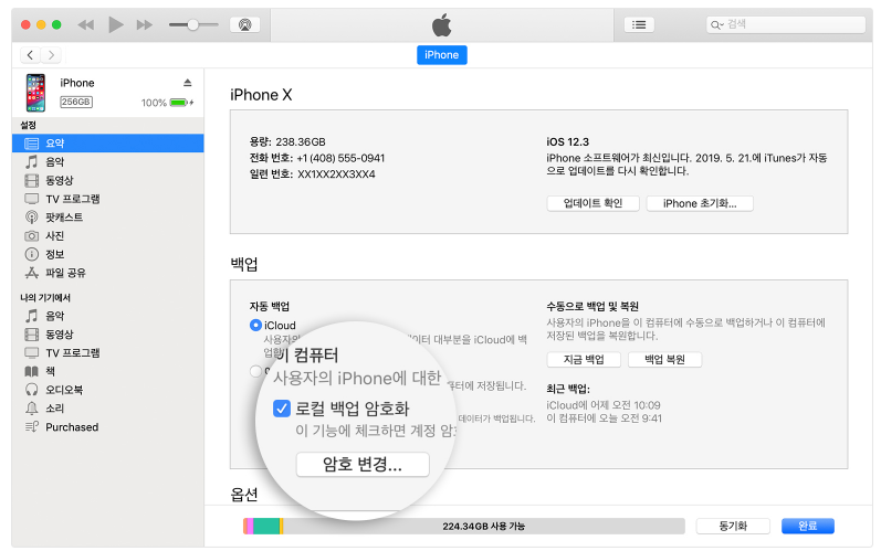 계속 "IOS 디바이스의 암호화 기능을 끄세요"라고 나오고