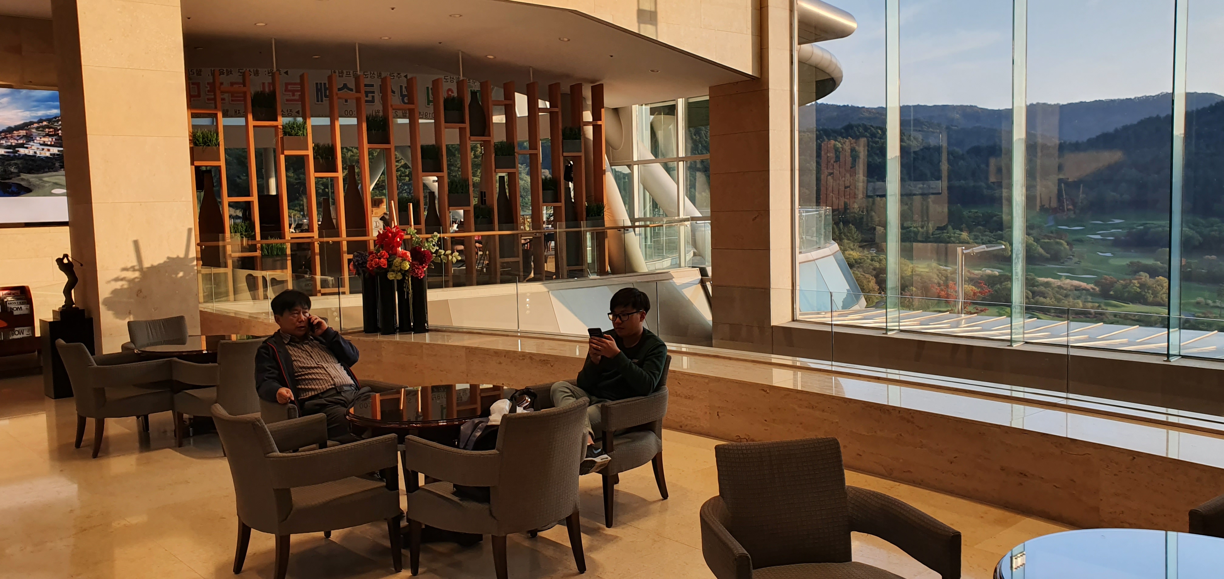 로비에 있는 유리창으로