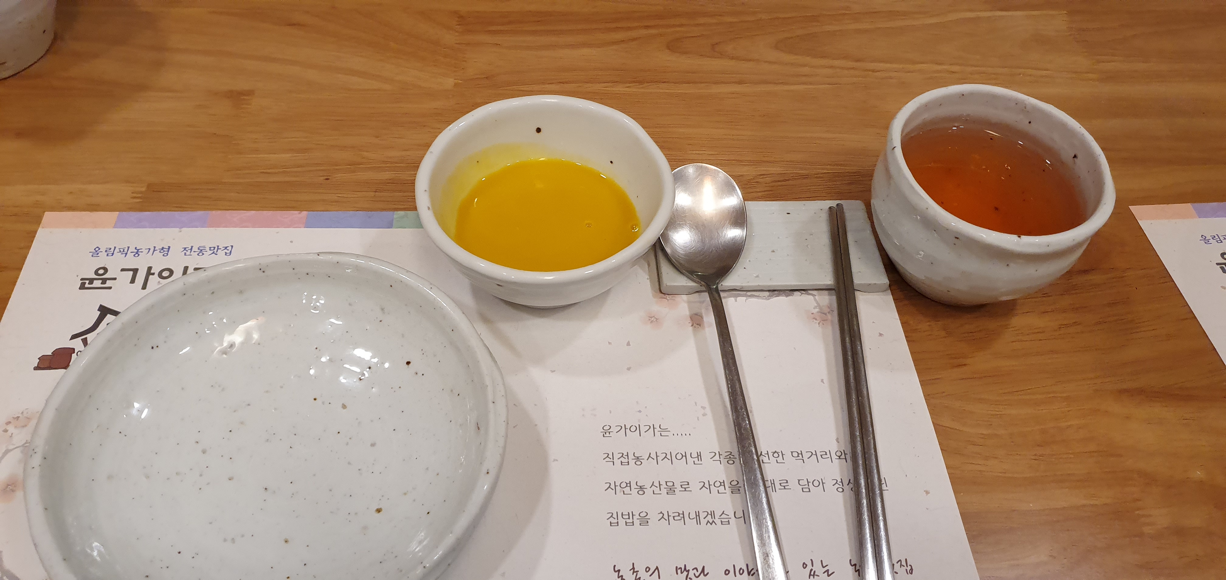 차를 즐기는 사이 호박죽이 나왔다.