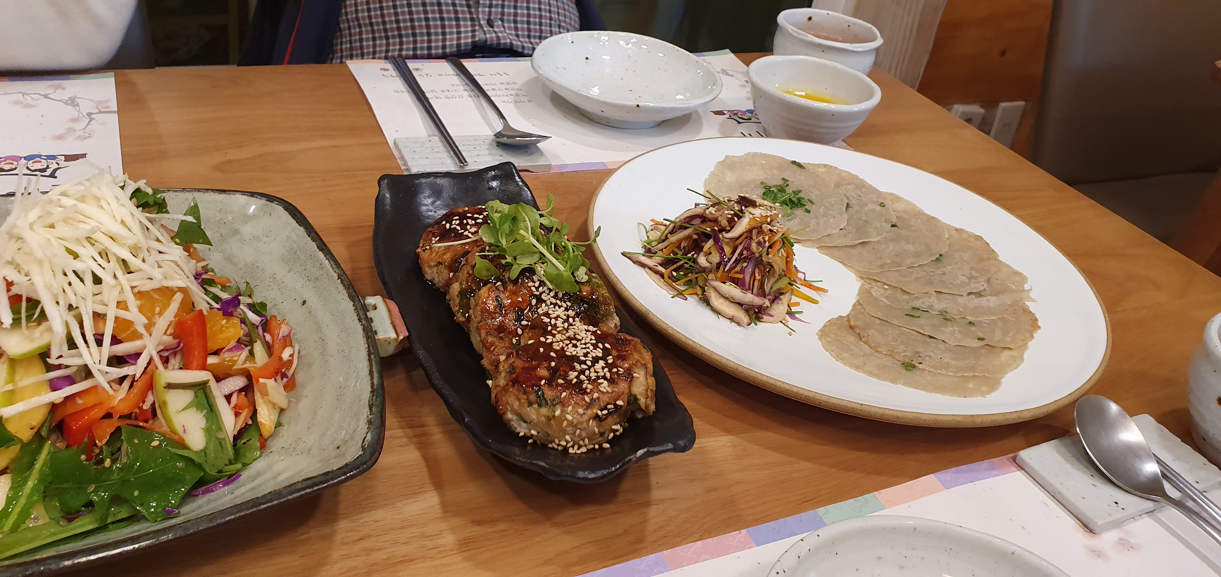 메밀전병표고 더덕쌈과 더덕 떡갈비가 나왔다.