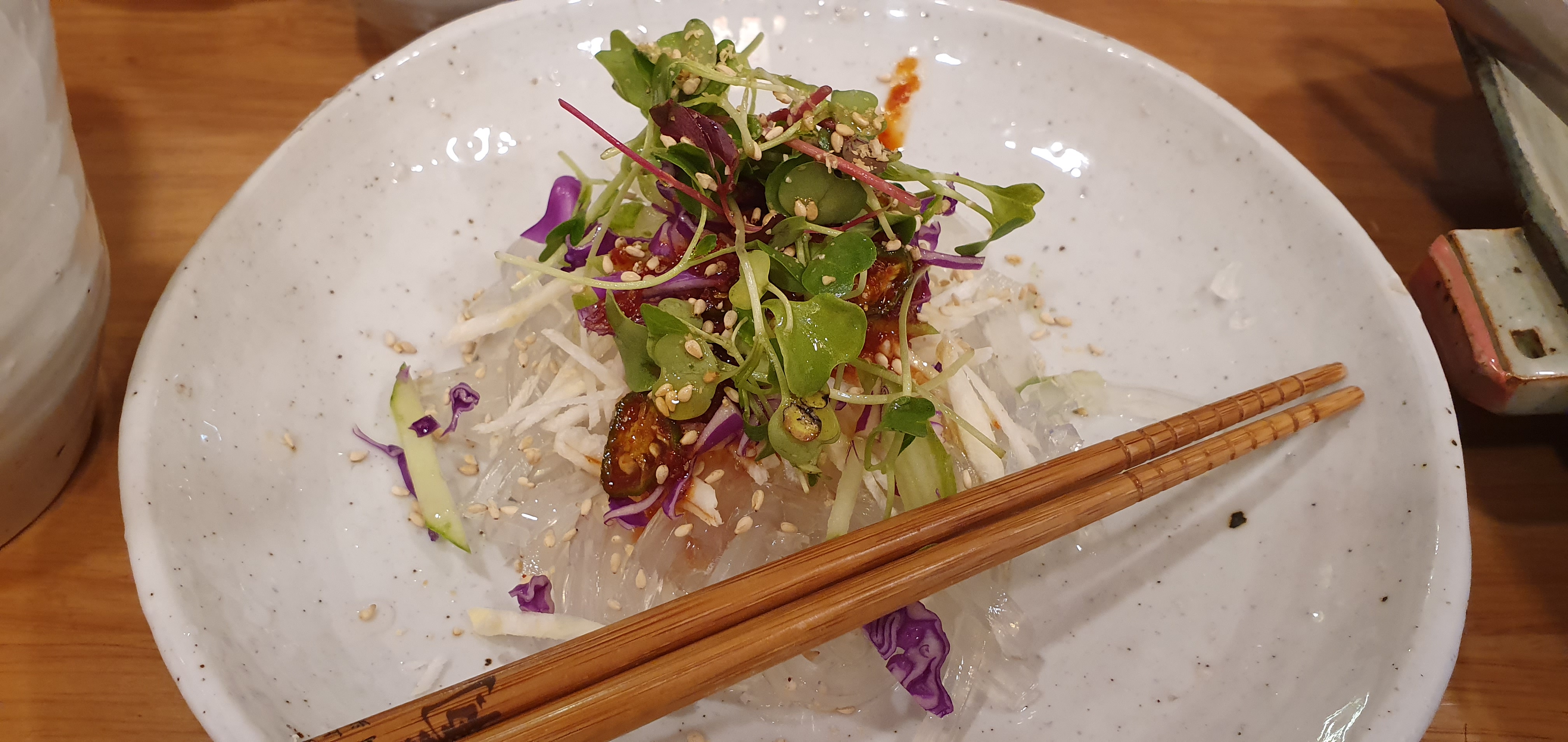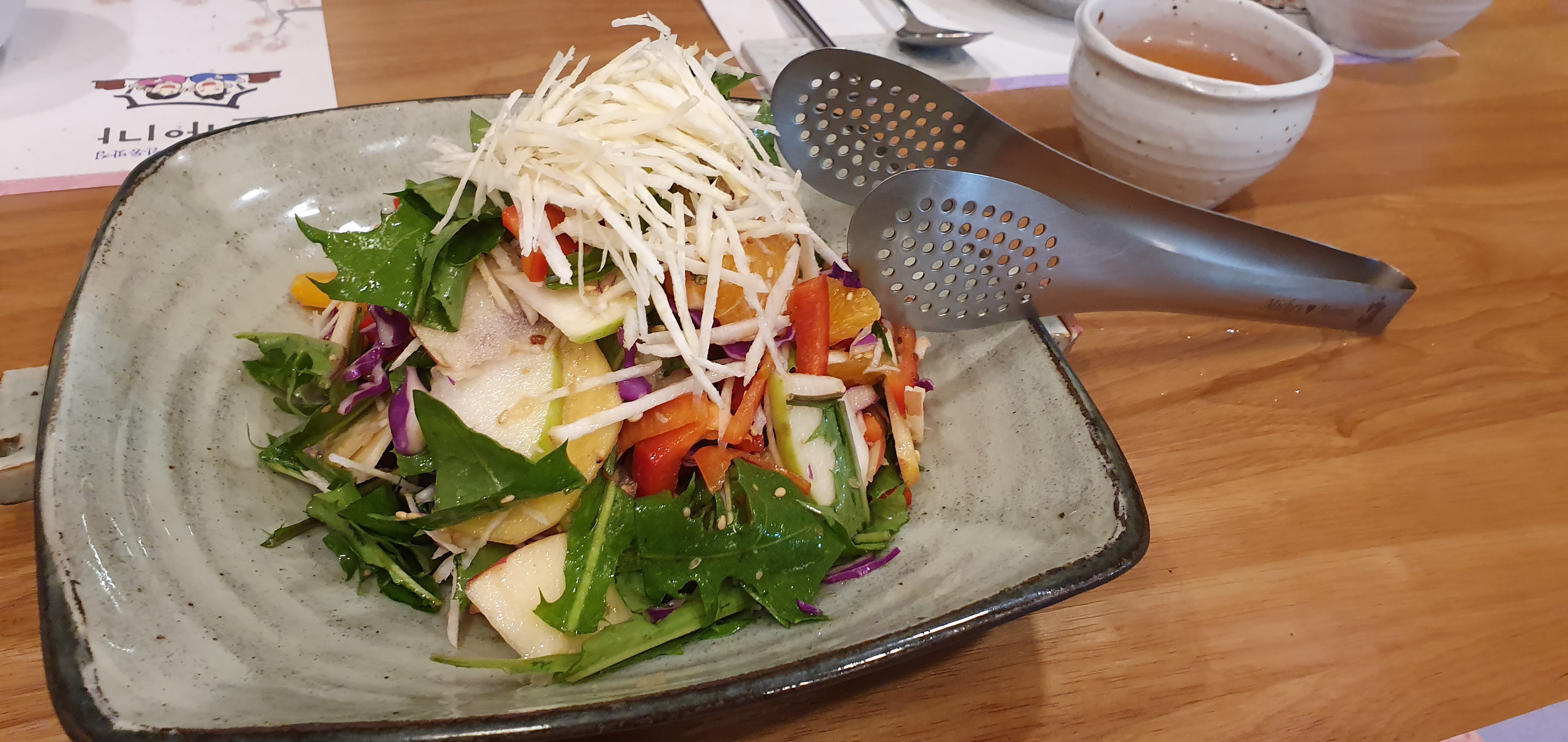 상큼한 야채와 우무묵을 같이 한 입에 먹었다.