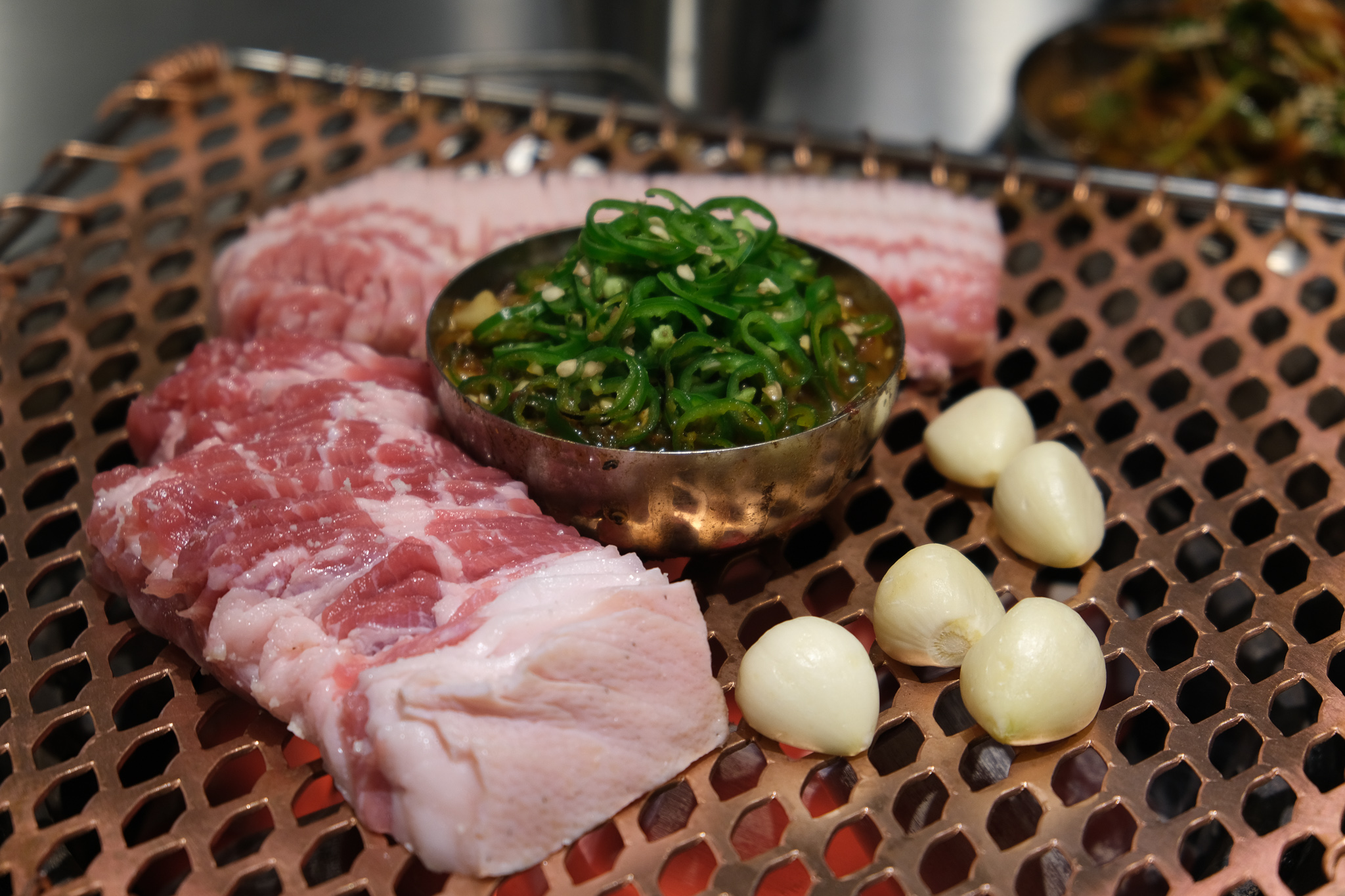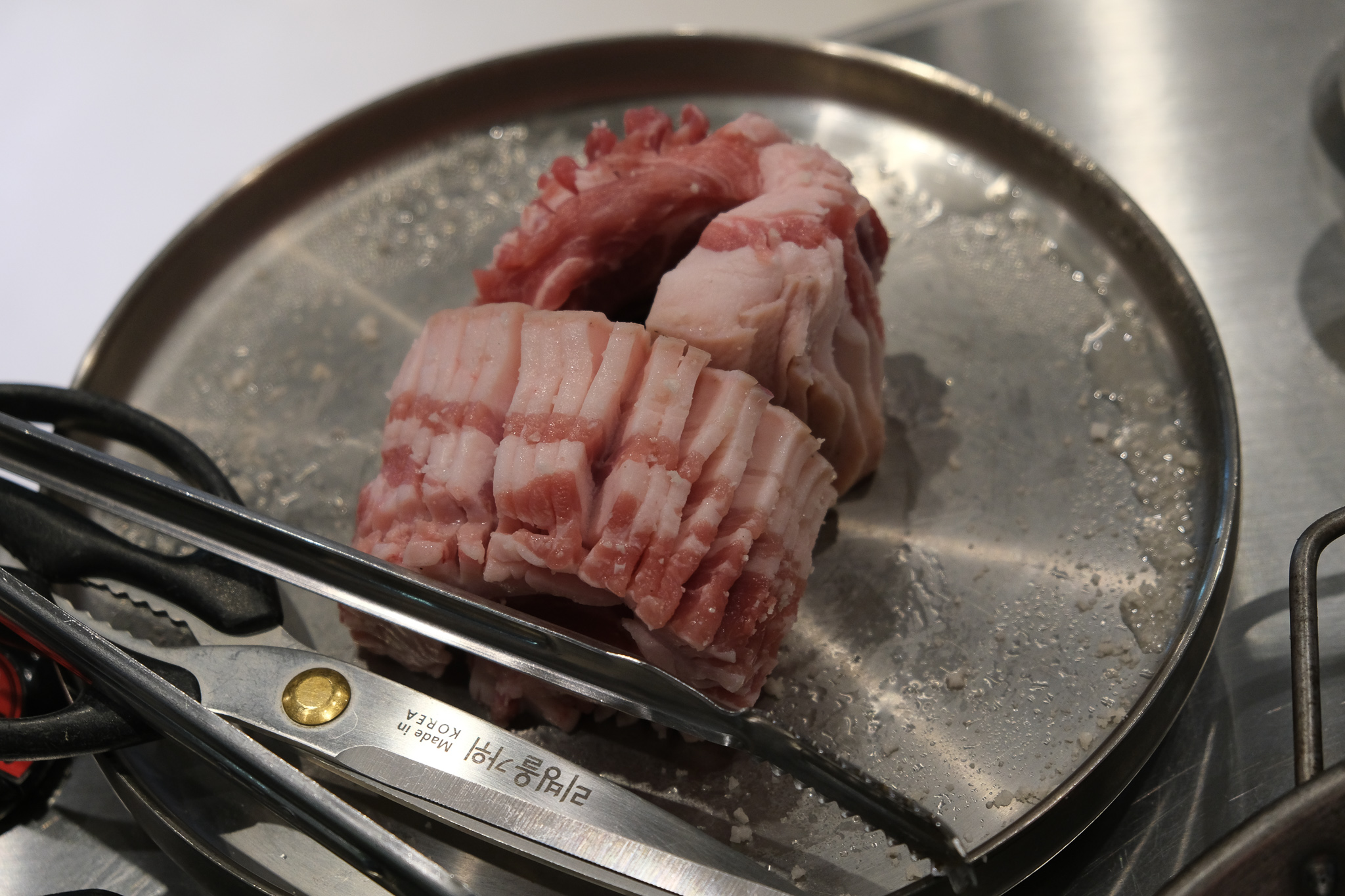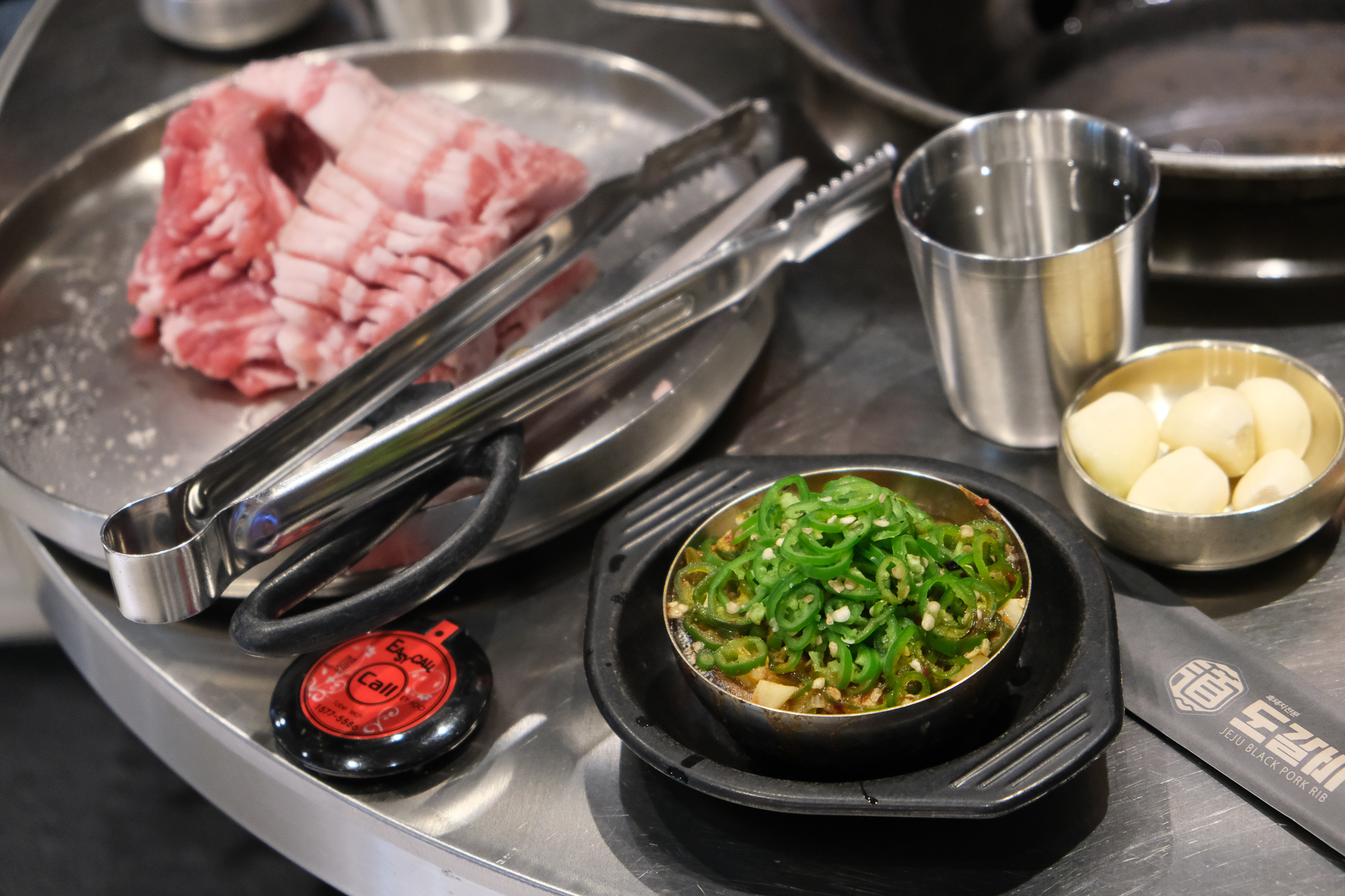 우리는 흑돼지 목살 1과 흑도겹 1을 주문했다.