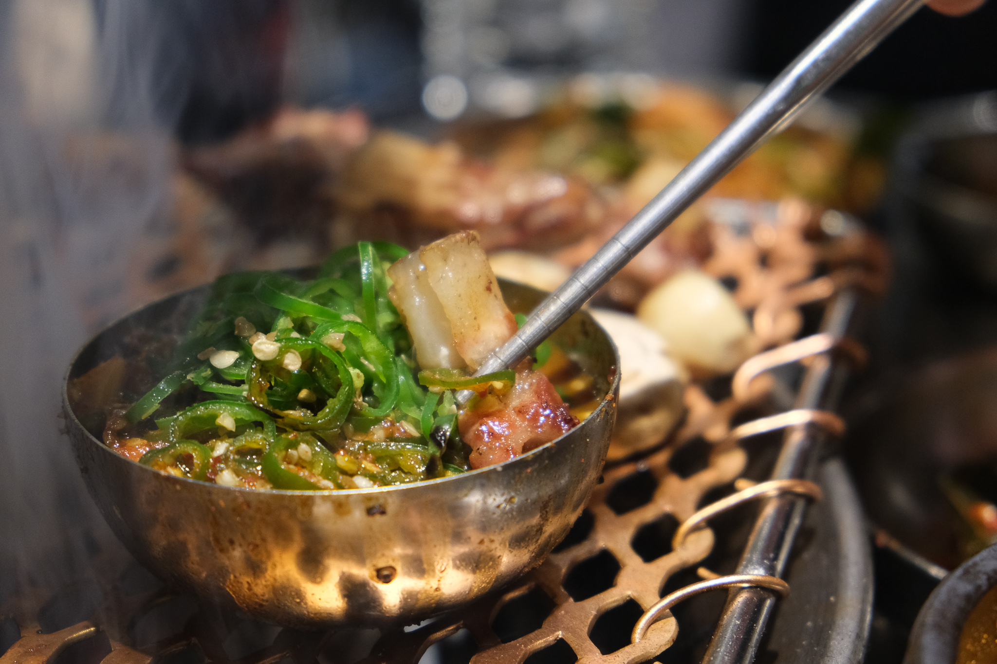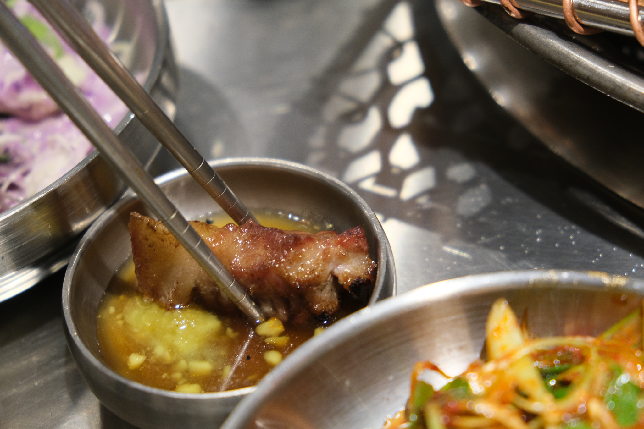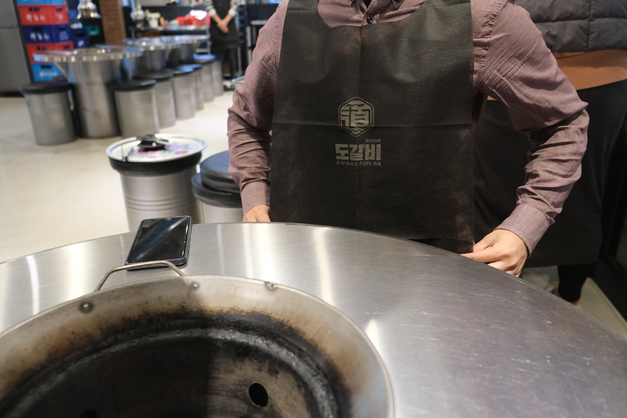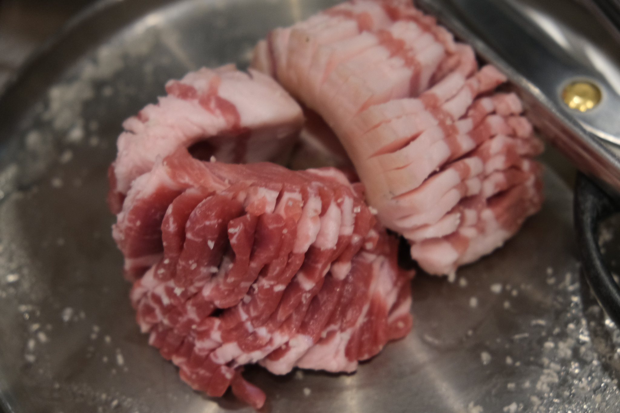 우리는 흑돼지 목살 1과 흑도겹 1을 주문했다.