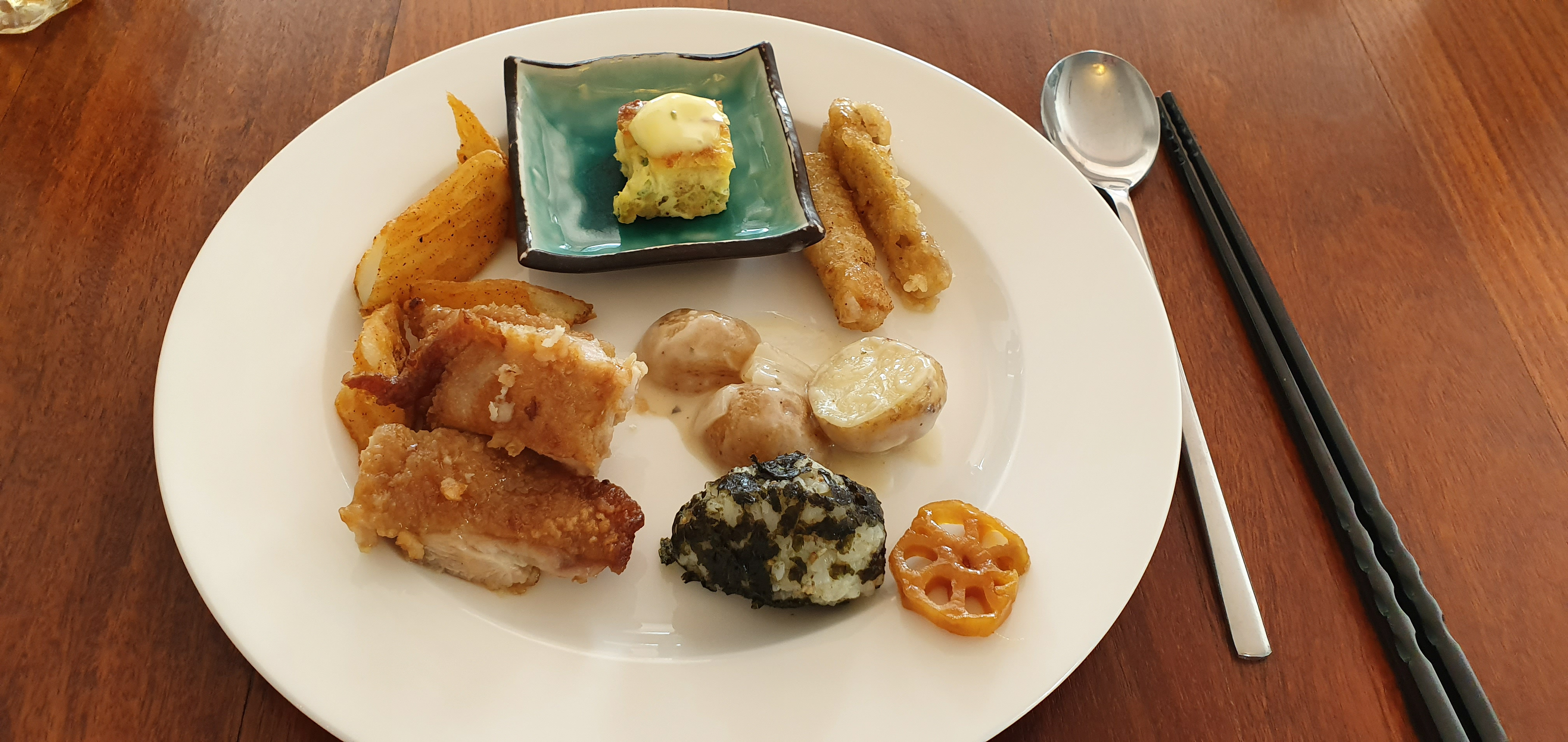 간단하게 먹을 생각 했는데 뷔페가 차려져 있었다.