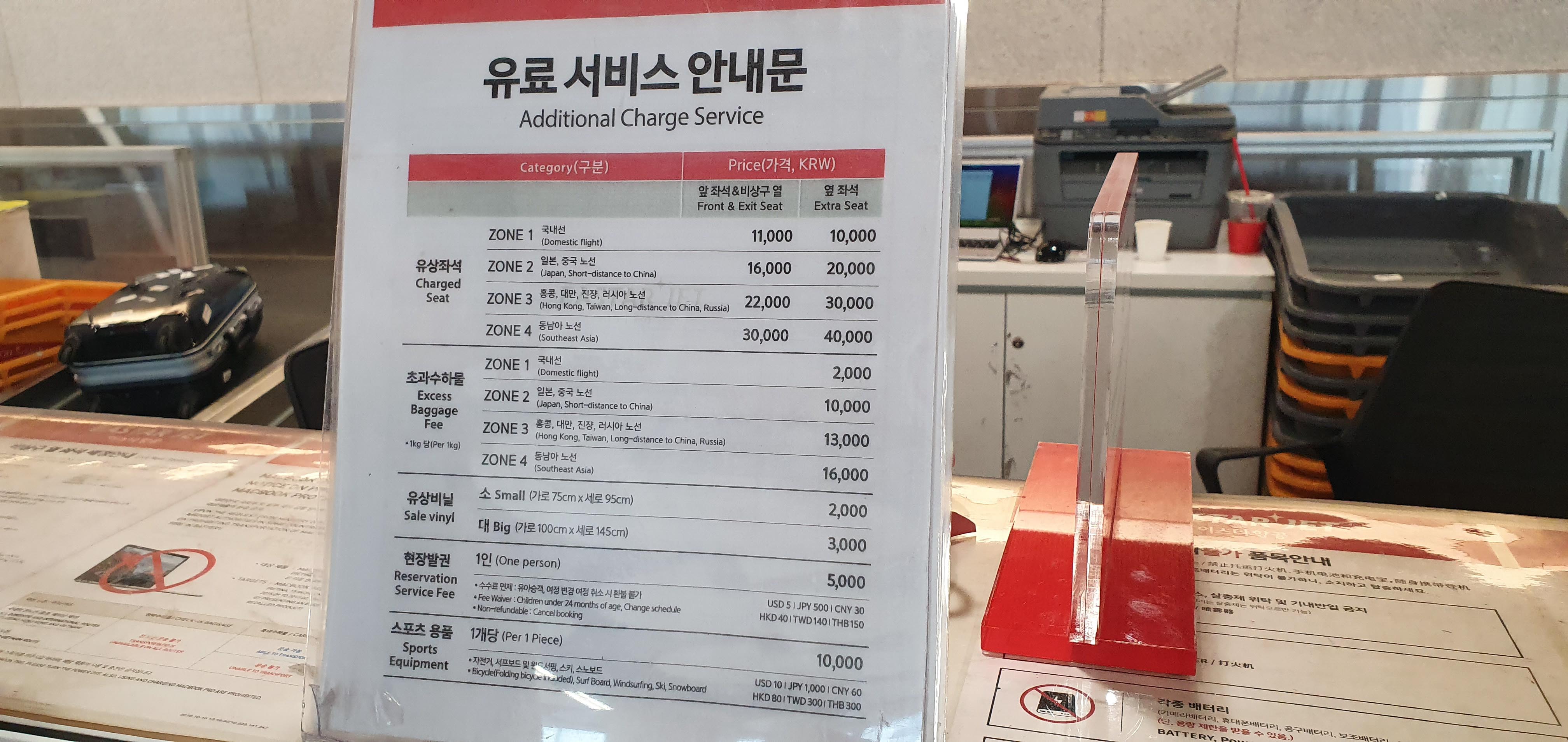 '특가 운임'의 경우, 무료 위탁 수하물이 불포함이다. 나는 골프채가 스포츠 용품에 해당해서 스포츠 용품 규정에 따라 수하물 비용이 측정되는 줄 알았는데 일반 수하물로 구분되서 Kg당으로 계산됐다. 나랑 남편 골프 백 두개 합쳐서 30kg 좀 안됐다. 현장에서 골프백 2개 위탁 수화물에 대한 비용 36,000원 지불하고 각자 캐리어는 기내수하물로 들고탔다. 캐리어의 무게는 따로 측정하지 않았다.