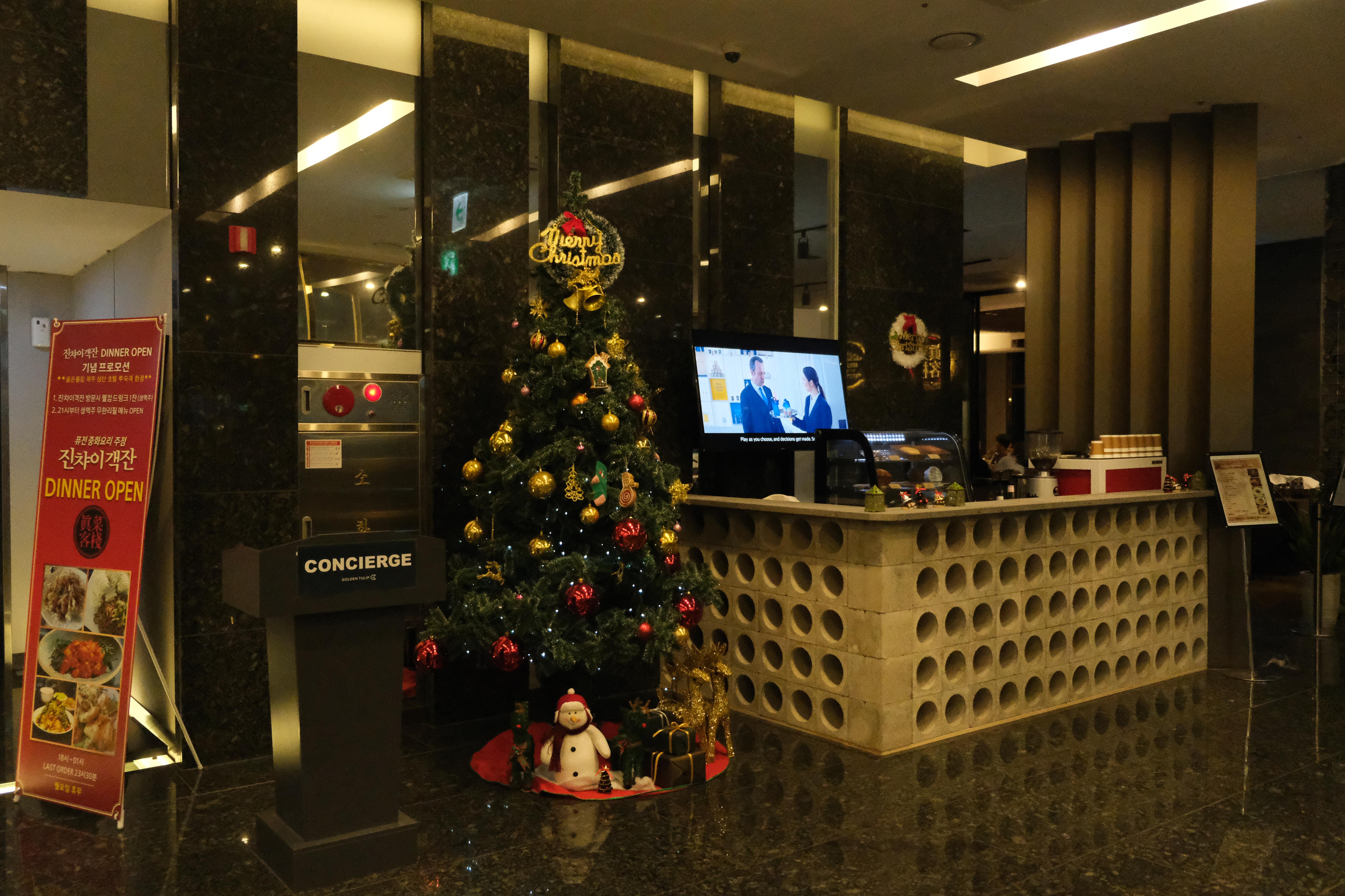 체크인 하러 로비로 왔다. 크리스마스 분위기 물씬이다~