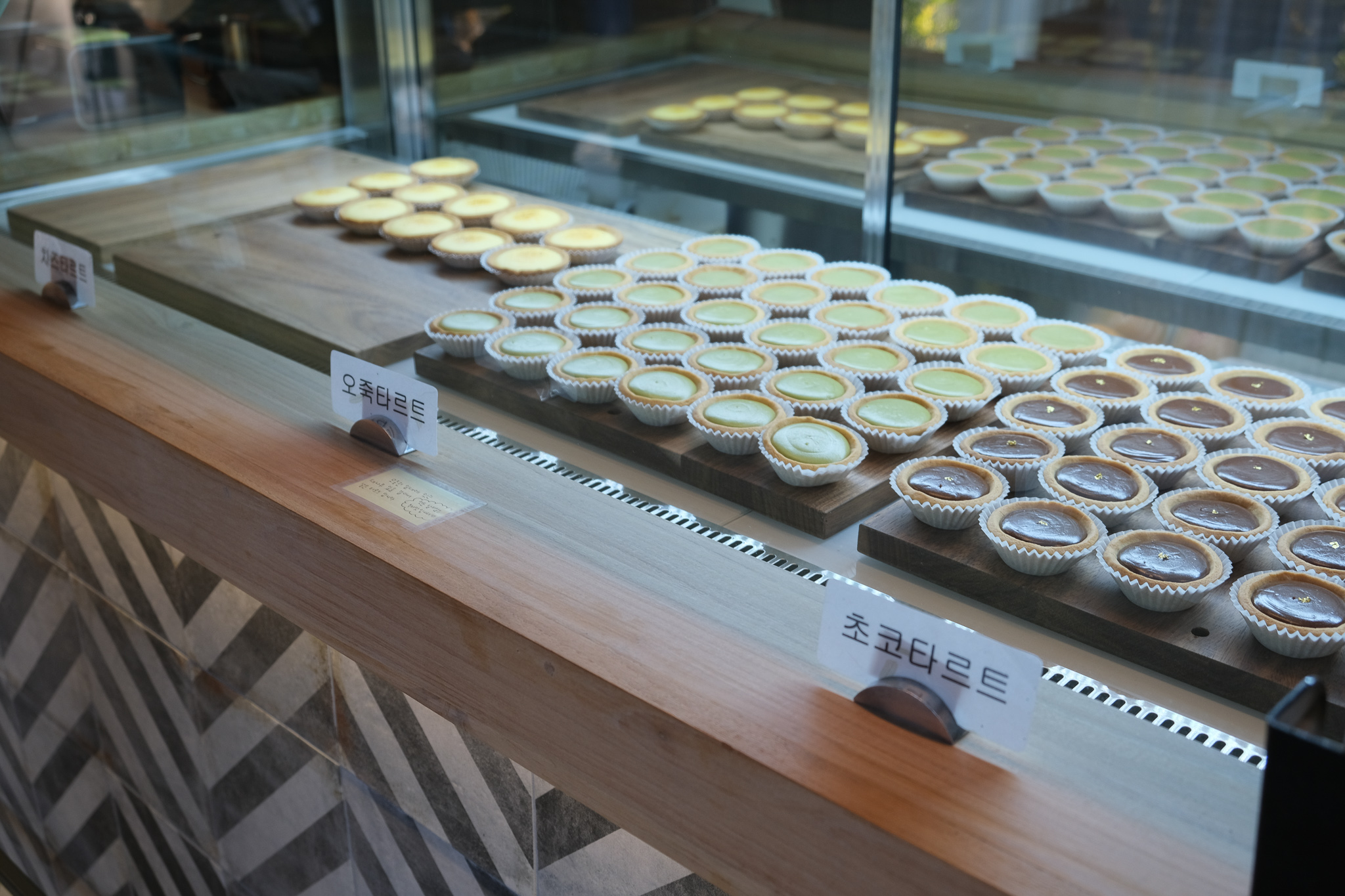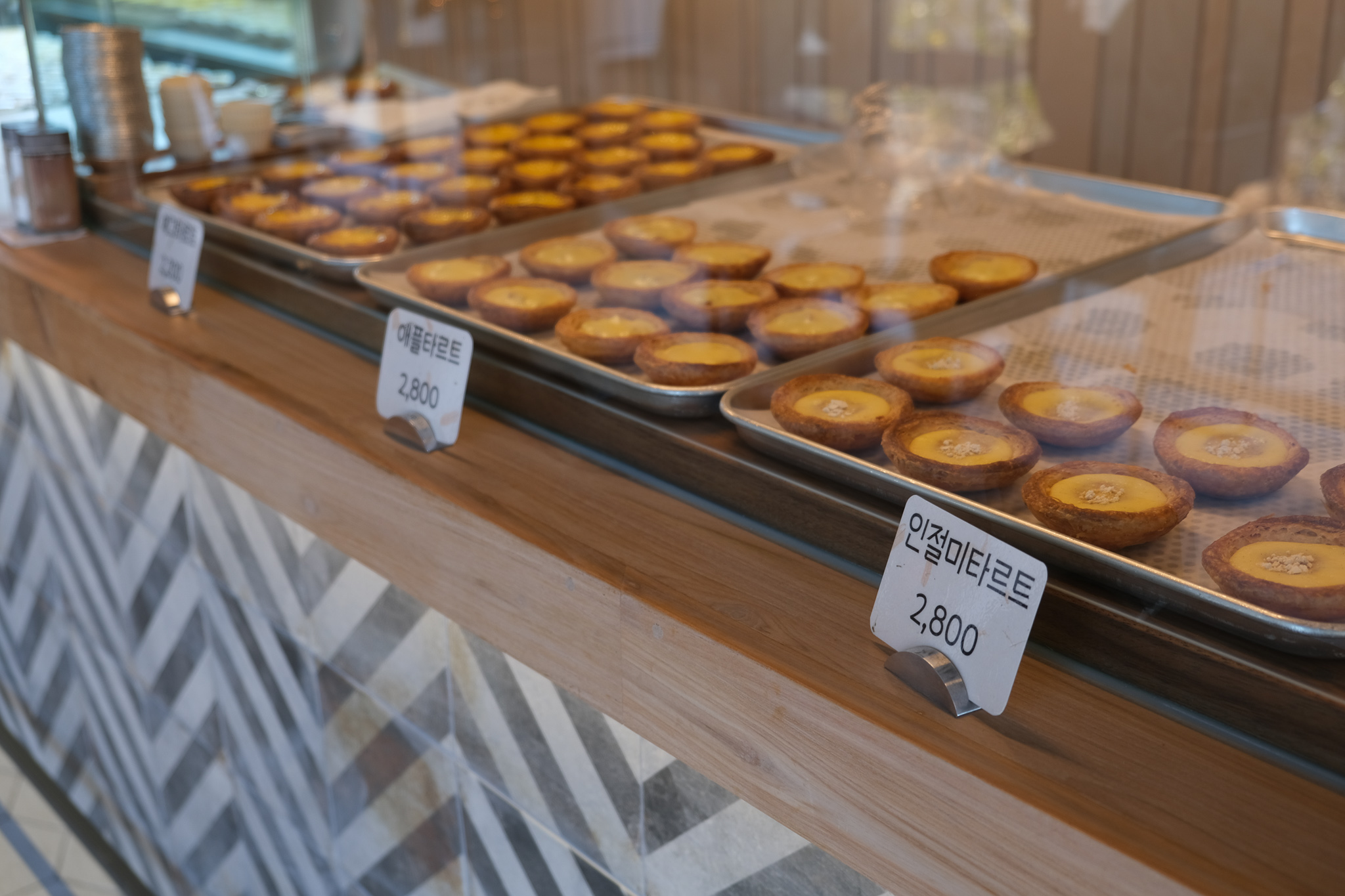 진열장에는 에그타르트 뿐만 아니라 다른 종류의 타르트들도 있었다.