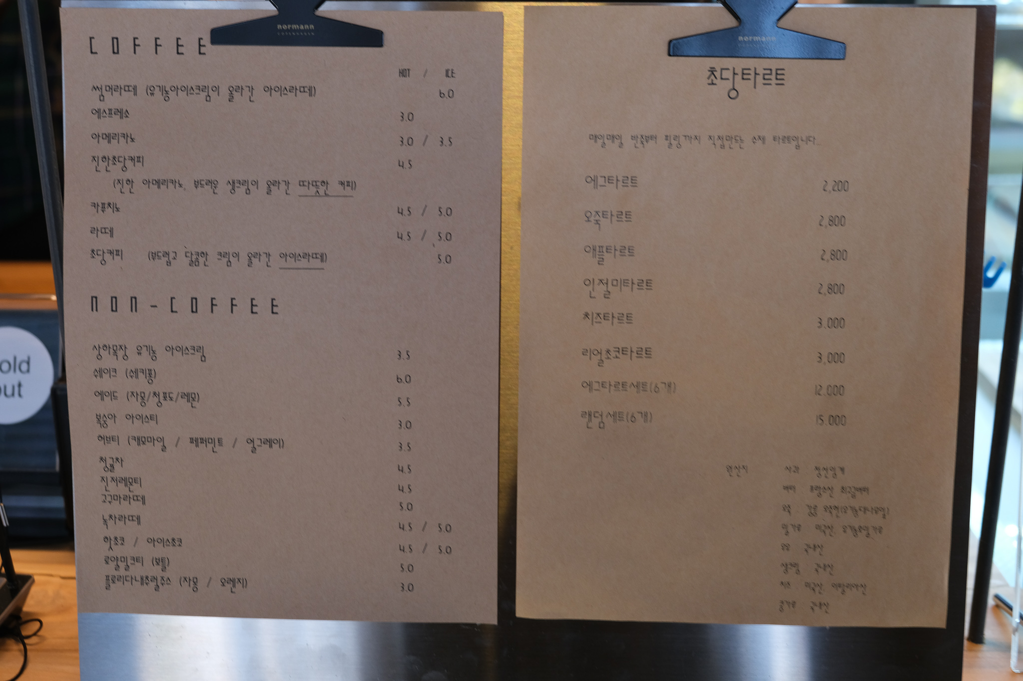 램던세트 (6개/동일한 타르트 종류를 2개 이상 넣을 수 없는 세트)와 아메리카노, 그리고 진한초당커피를 주문했다.