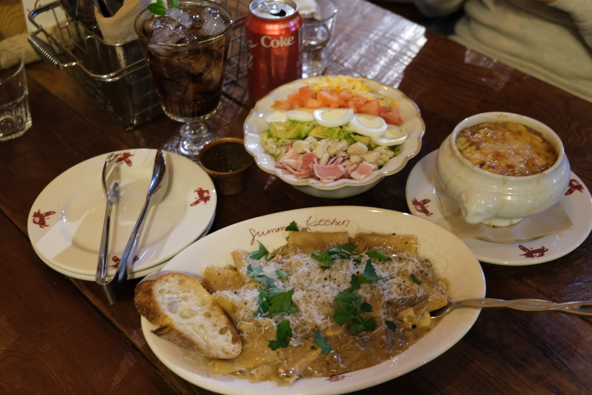 남편과 나는 쁘띠 콥샐러드 1, 프렌치 어니언스프 1, 프렌치 버섯 파스타 1, 바게뜨 1, 콜라 1을 주문했다.