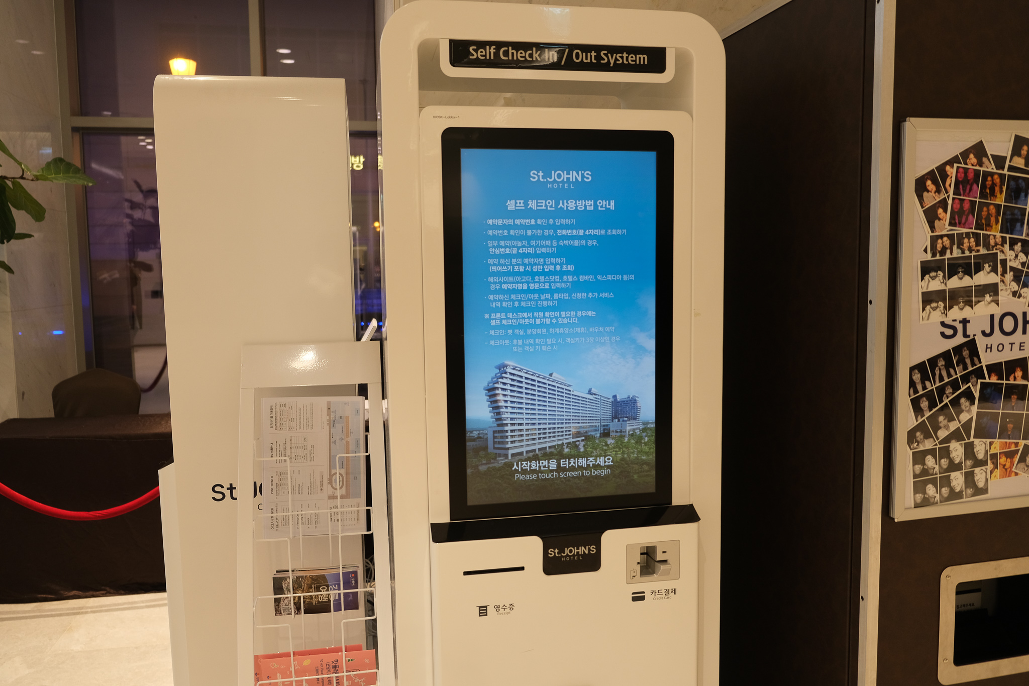 언제부터 작동했는지는 모르겠지만 하나 둘 사람들이 모이기 시작해서 나도 무인 체크인 기기로 체크인을 했다.