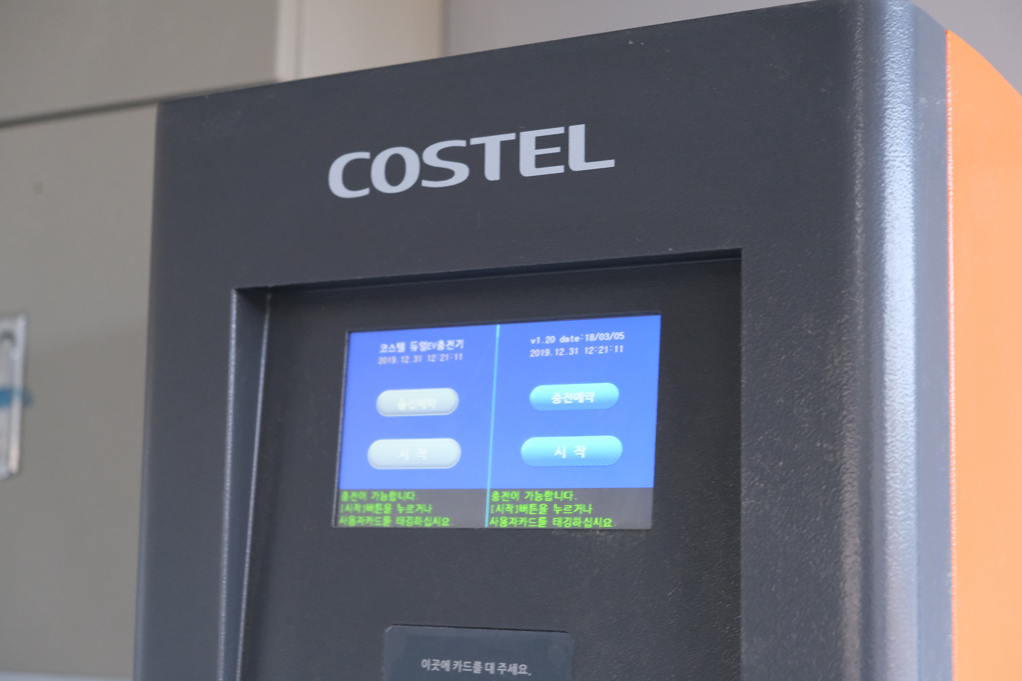 주차장 내부에 전기차 충전하는 기기도 있었다.