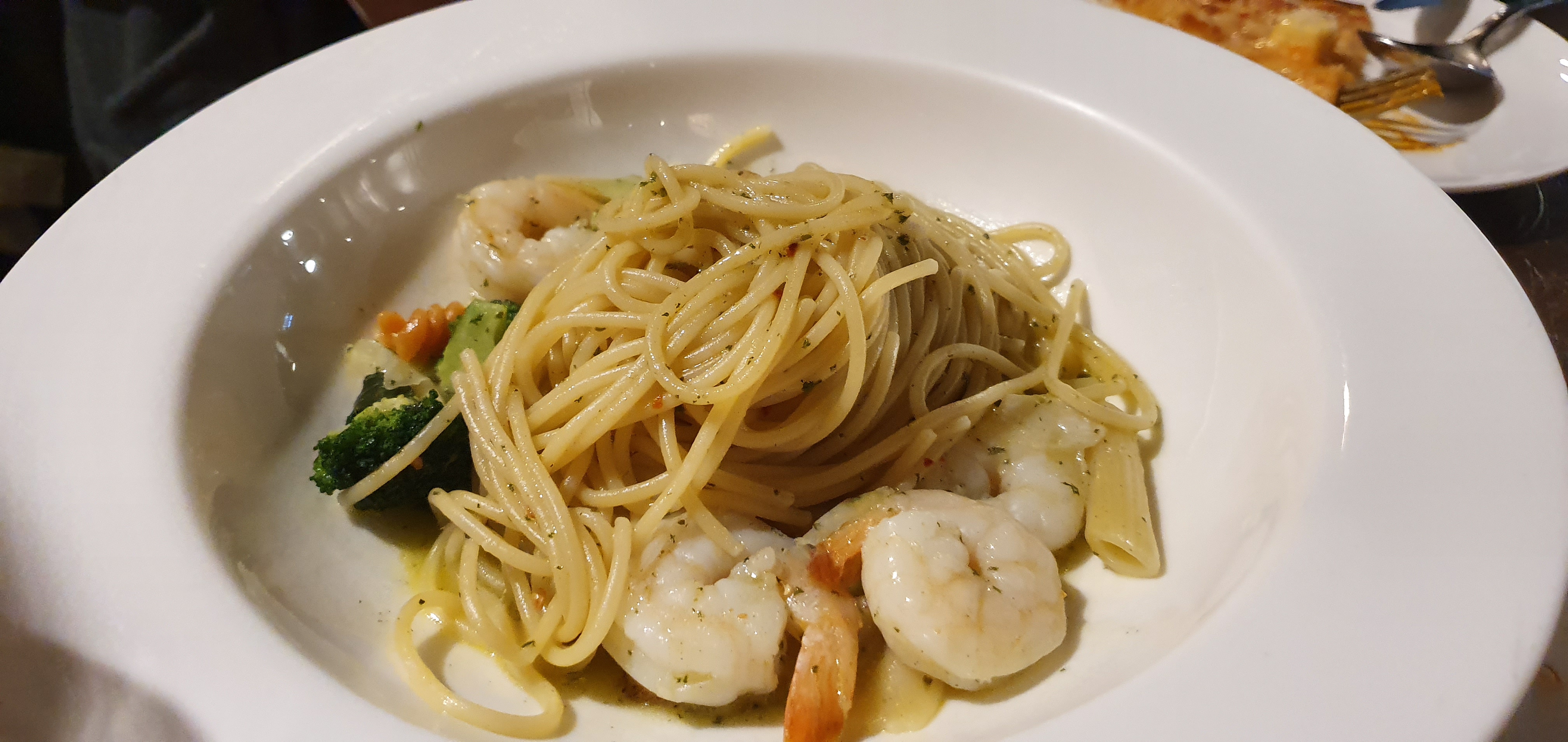 우리는 닭가슴 샐러드 1, 네베 피자 1, 만조 리조트 1, 단호박 파스타 1, 포카치아 1, 감베로니 1, 콜라 2를 주문했다.