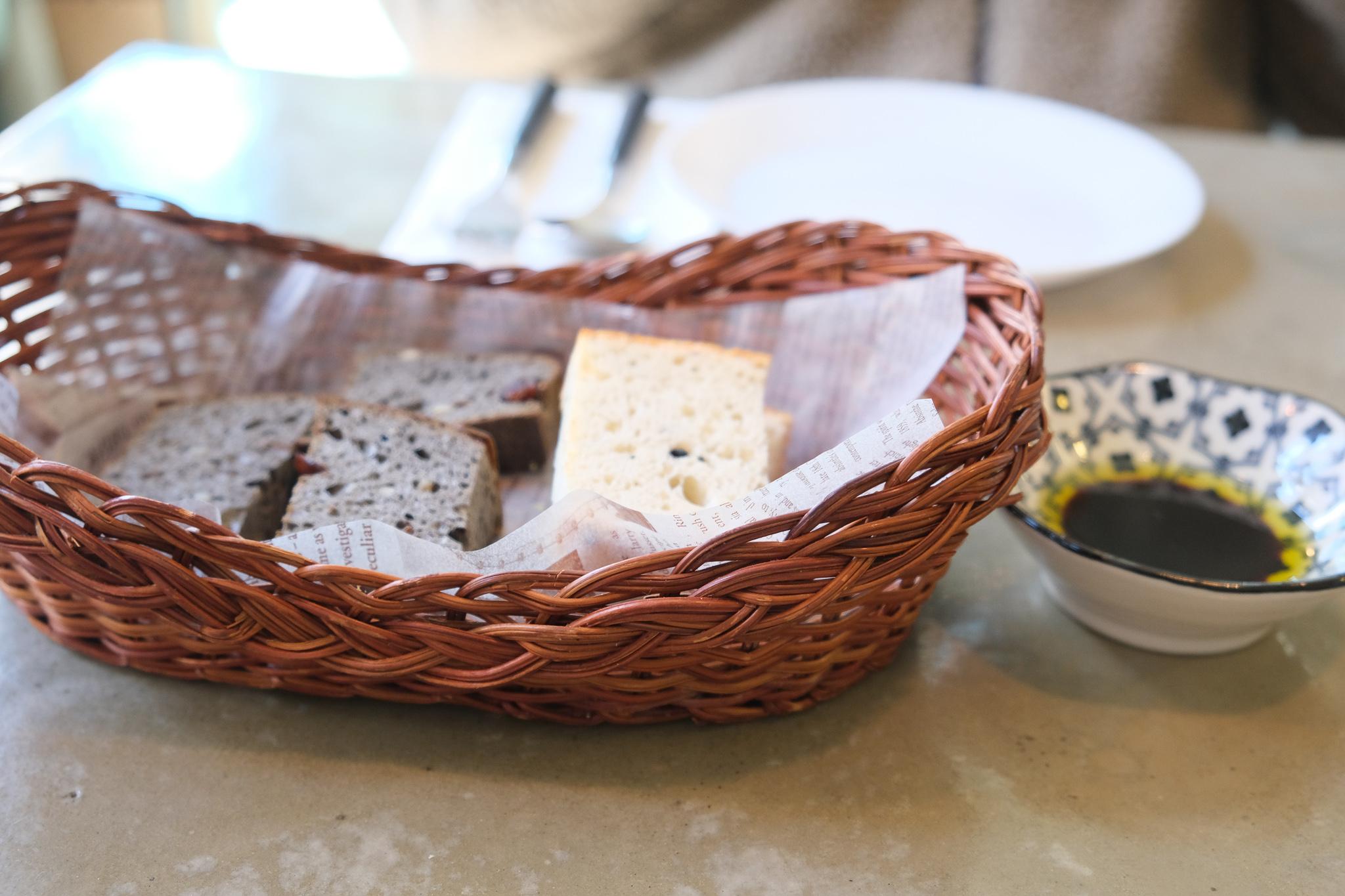 식전빵이 나왔는데 고소했다.