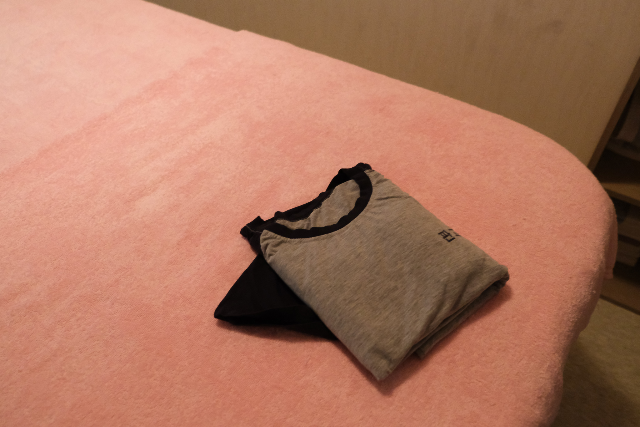준비된 옷으로 갈아입고 마사지 받을 준비를 했다.
