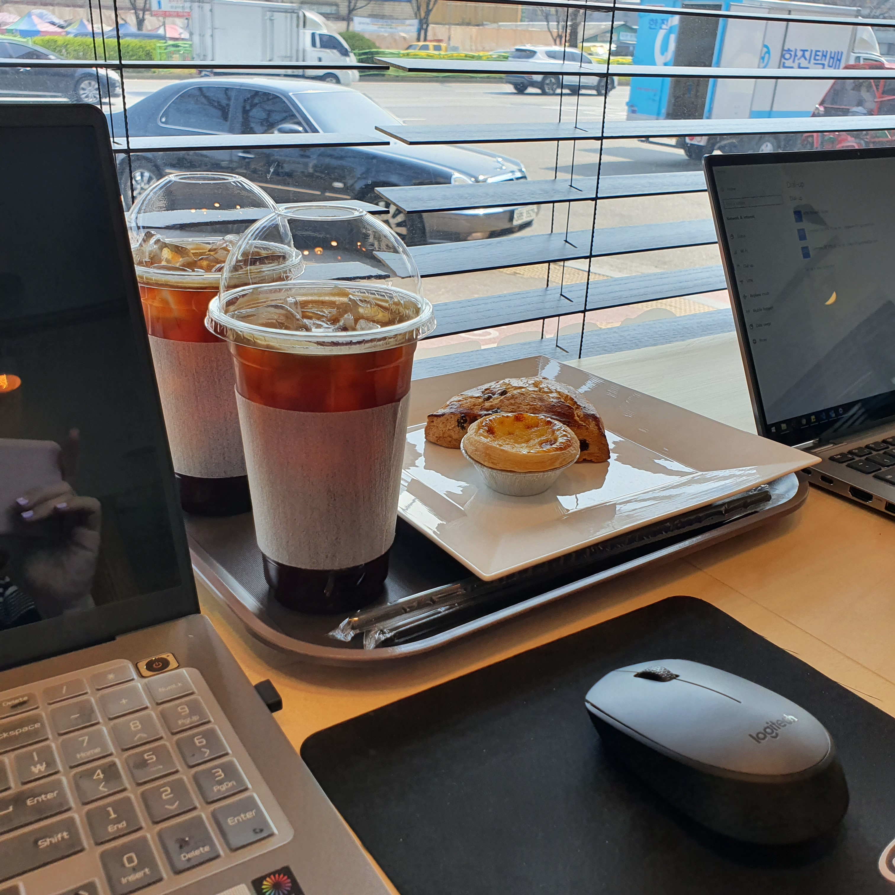 맛있는 디저트와 함께 카페에서 햇살을 느끼며 남편이랑 공부하기!
