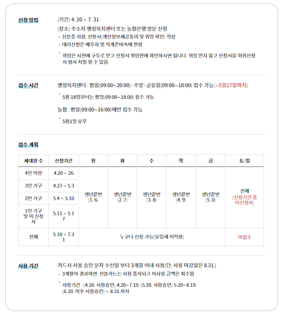 주소지 행정복지센터 또는 농협은행에 방문해서 신청할 수 있다고 한다.