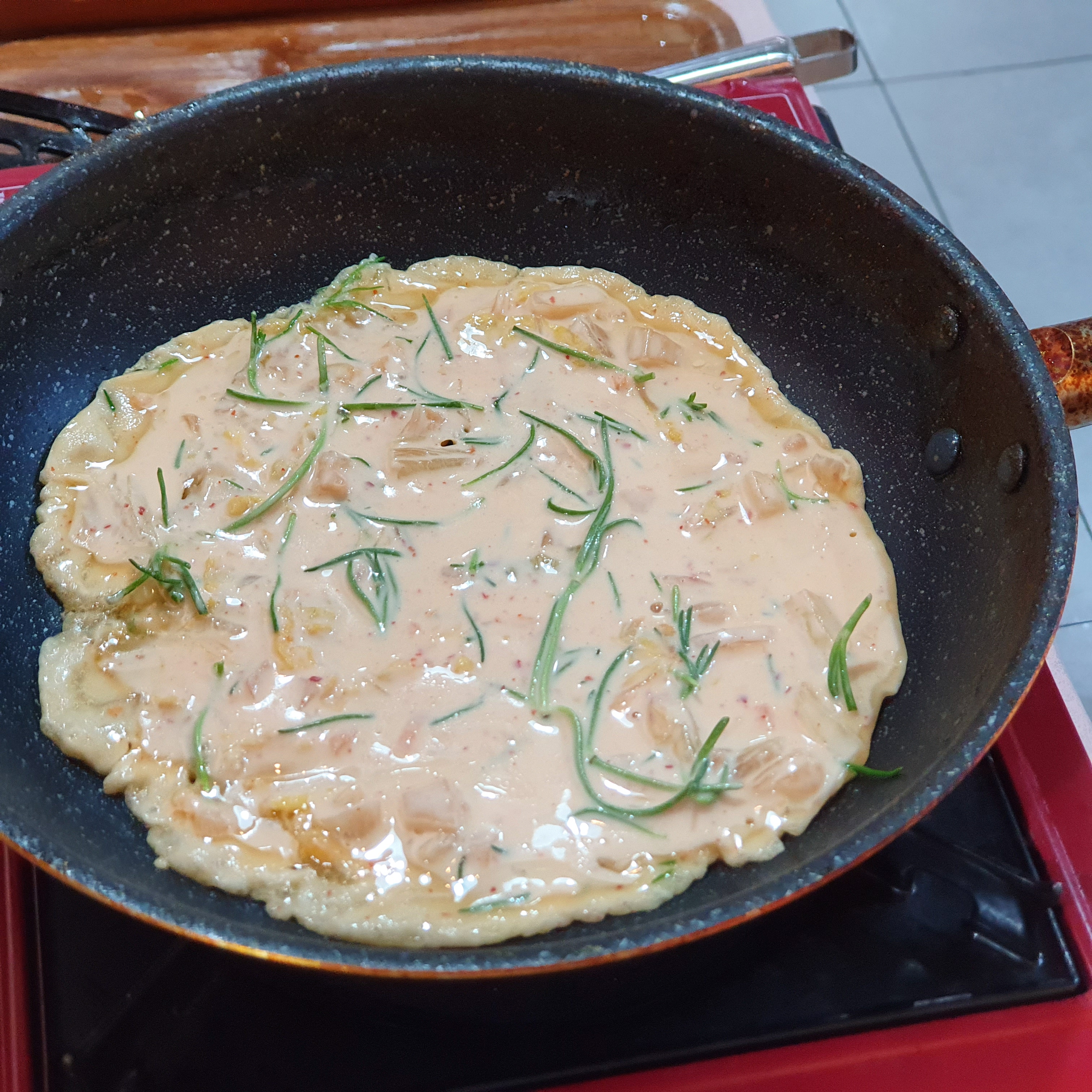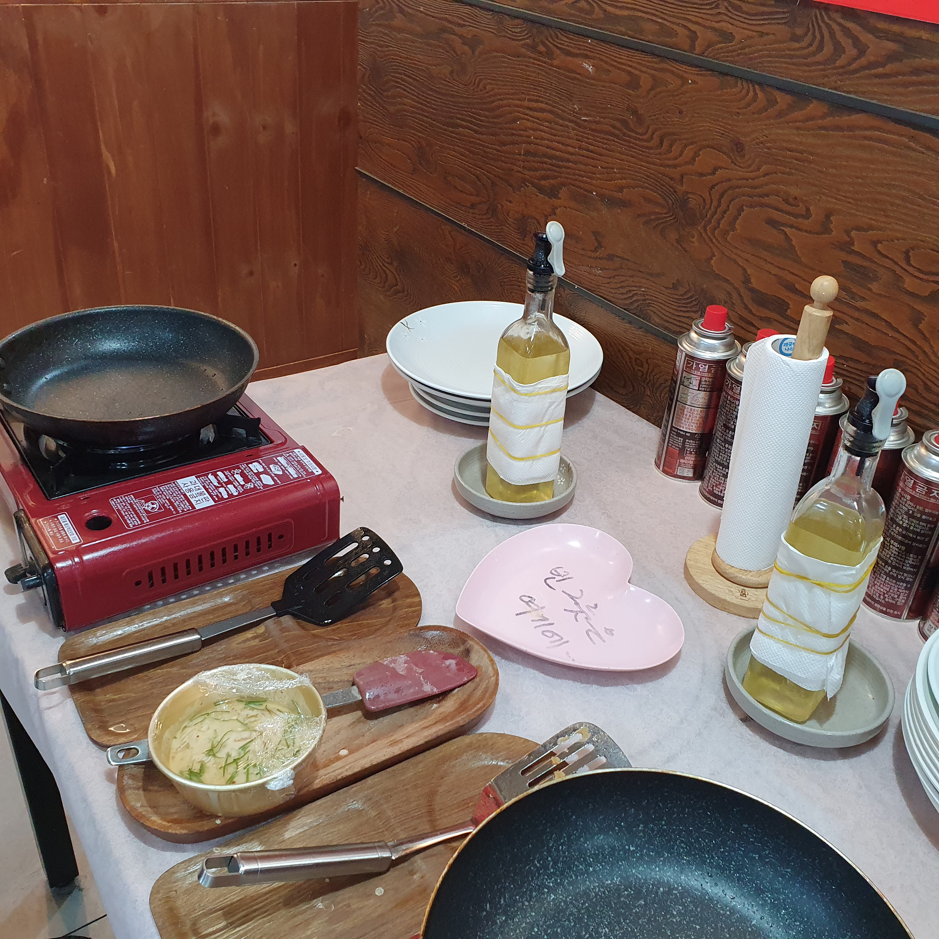 기름을 낭낭하게 두르고 부침개 부치기 시작했다.