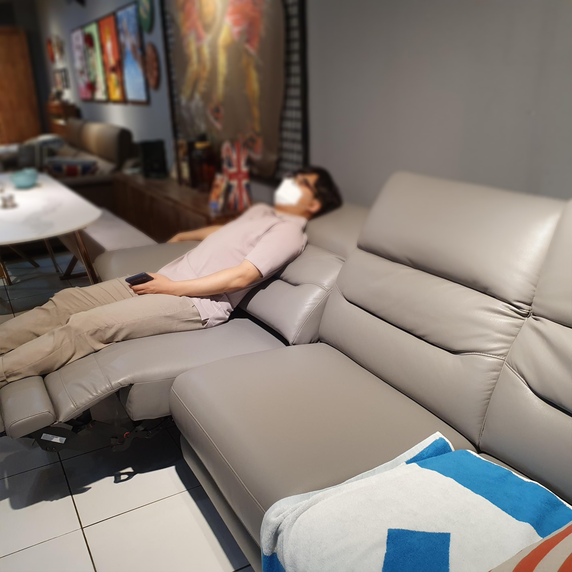 (내가 둘러본 곳들은 단추를 누르면 한 번에 쫙 다 내려가서 눕는거 또는 앉는거 밖에 선택이 안되는 리클라이너가 대부분이었었다.)