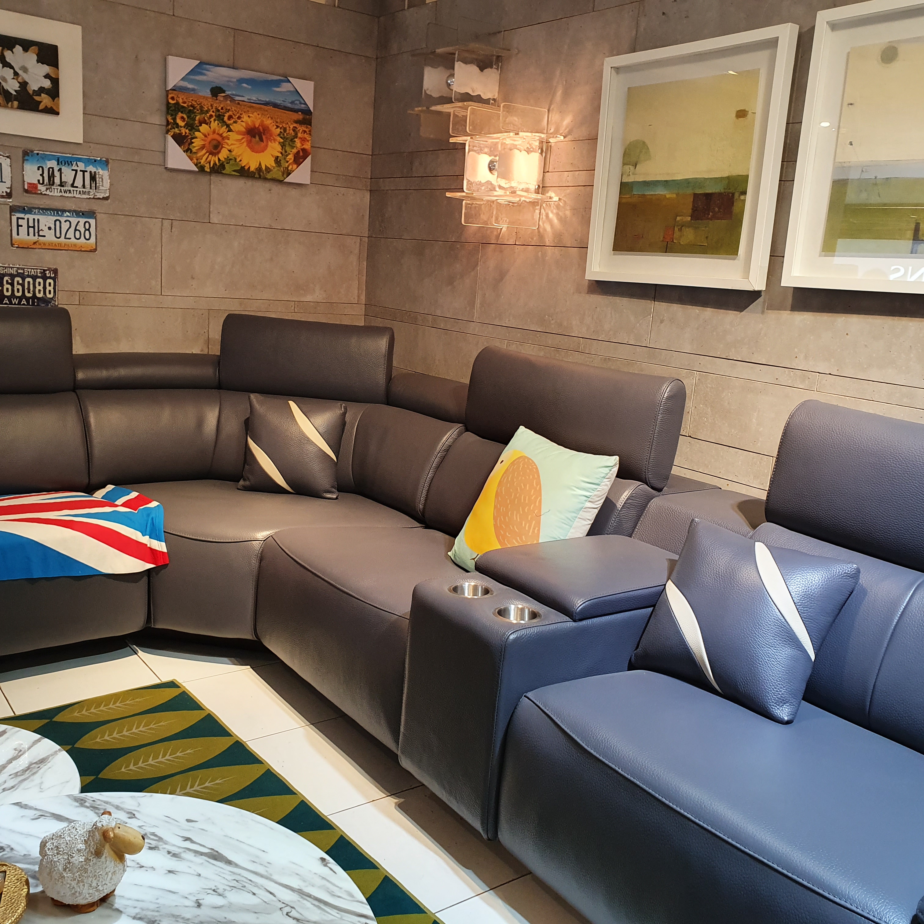 다양한 색상이 전시되어 있었는데 원하는 쇼파를 고른 후 원하는 색상으로 선택할 수 있었다.