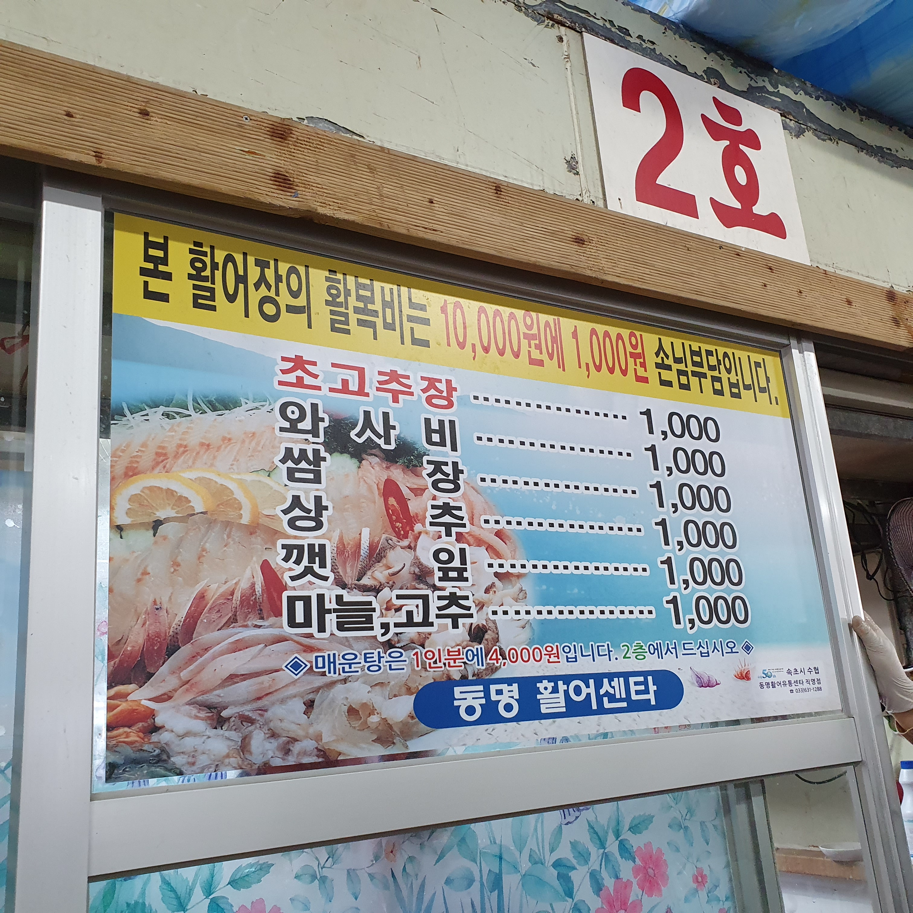 사장님께서 속초시 수협동명활어센터가면 합리적인 가격에 싱싱한 회를 먹을 수 있다고 추천해주셨다.