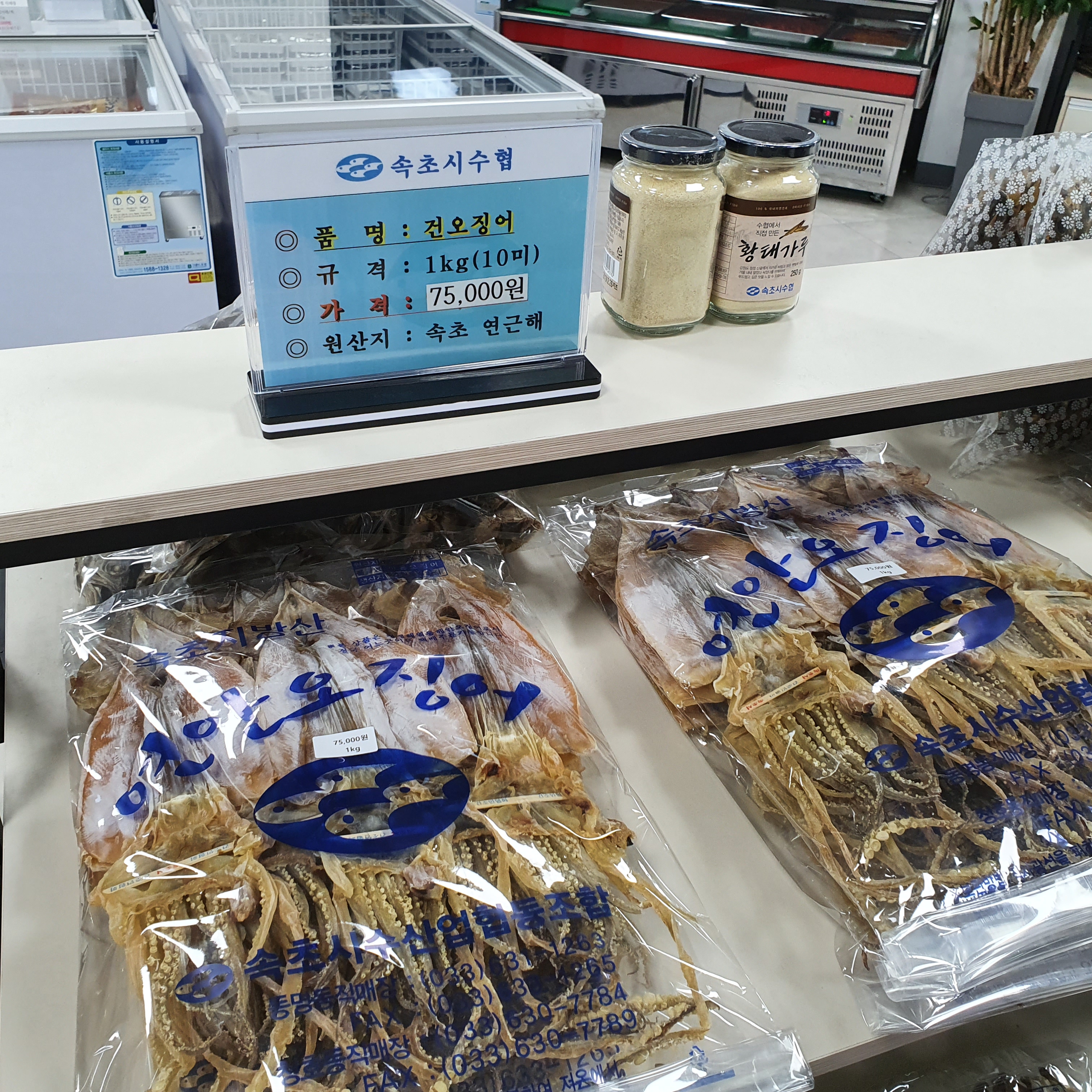 숙소로 들어오기전에 바로 옆에 수협 수산물 직매장 들러서 오징어를 샀다.
