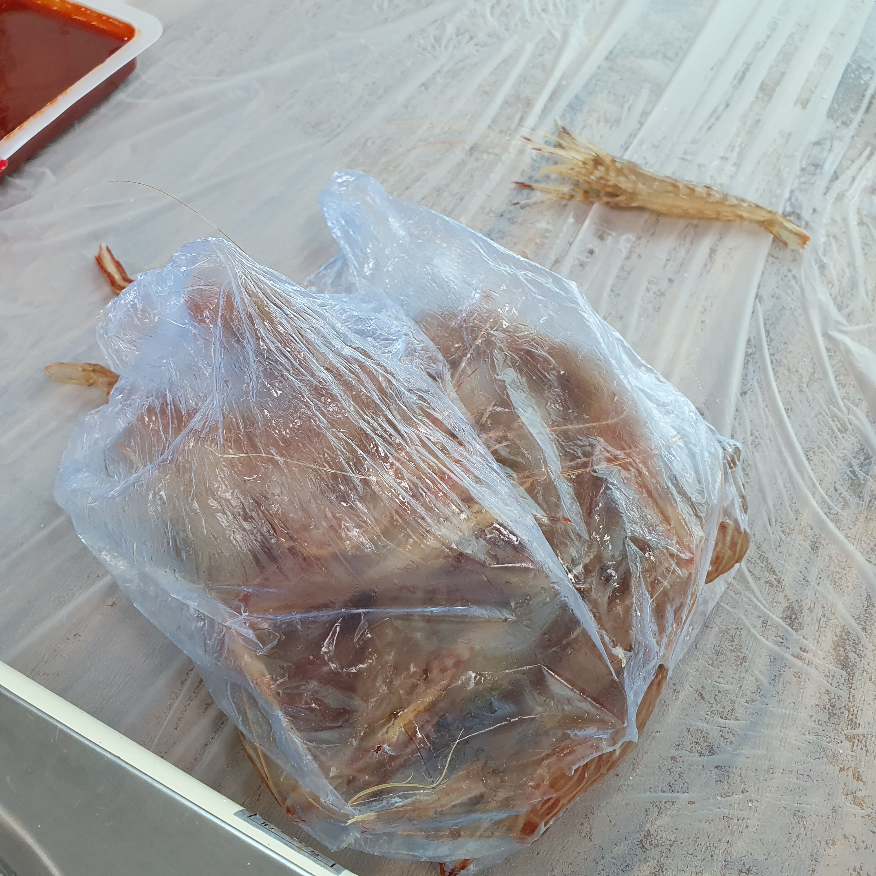 횟집에서 새우를 서비스로 주셨다.