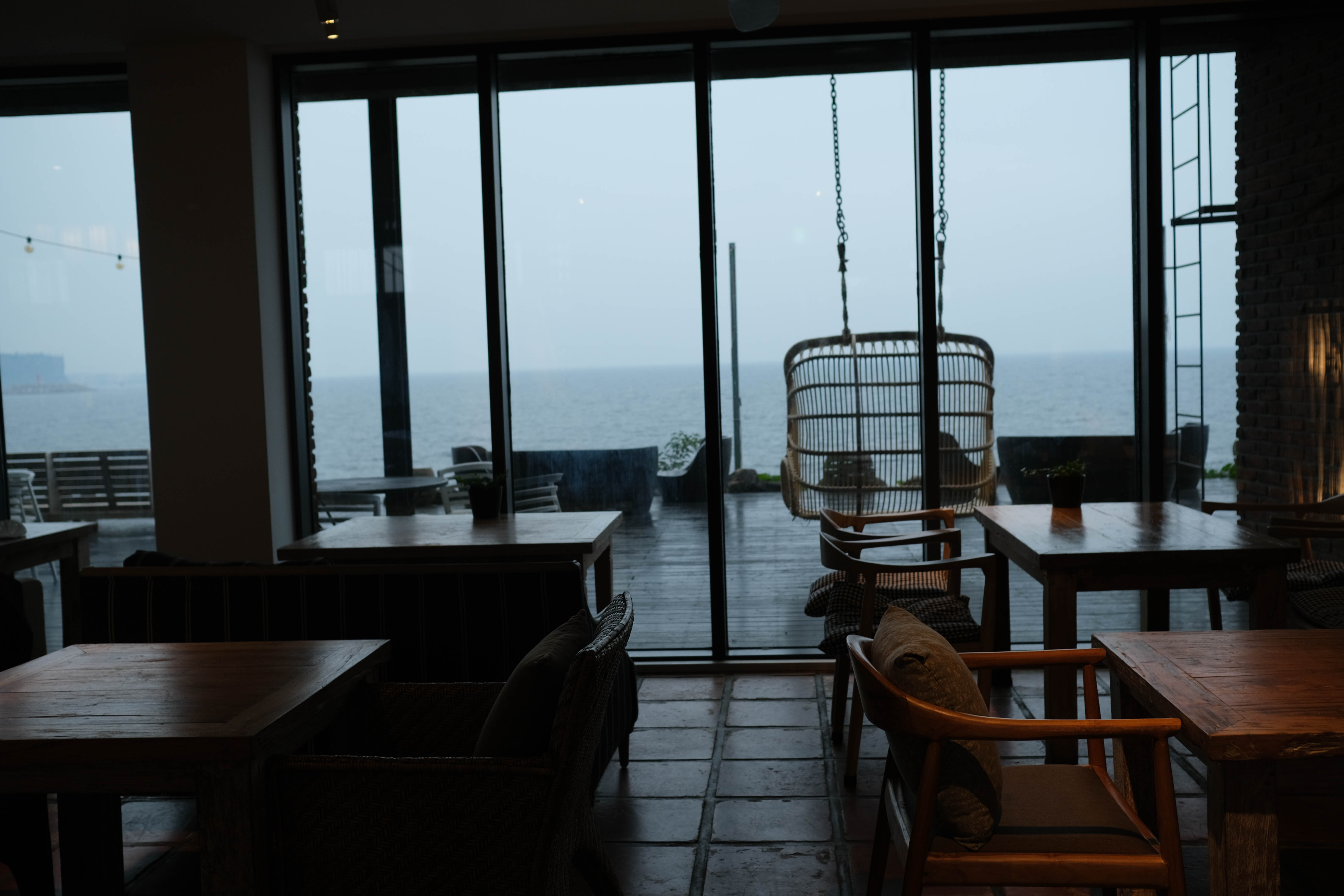 들어가기 전부터 바다 전망 레스토랑에 마음이 들떴다.