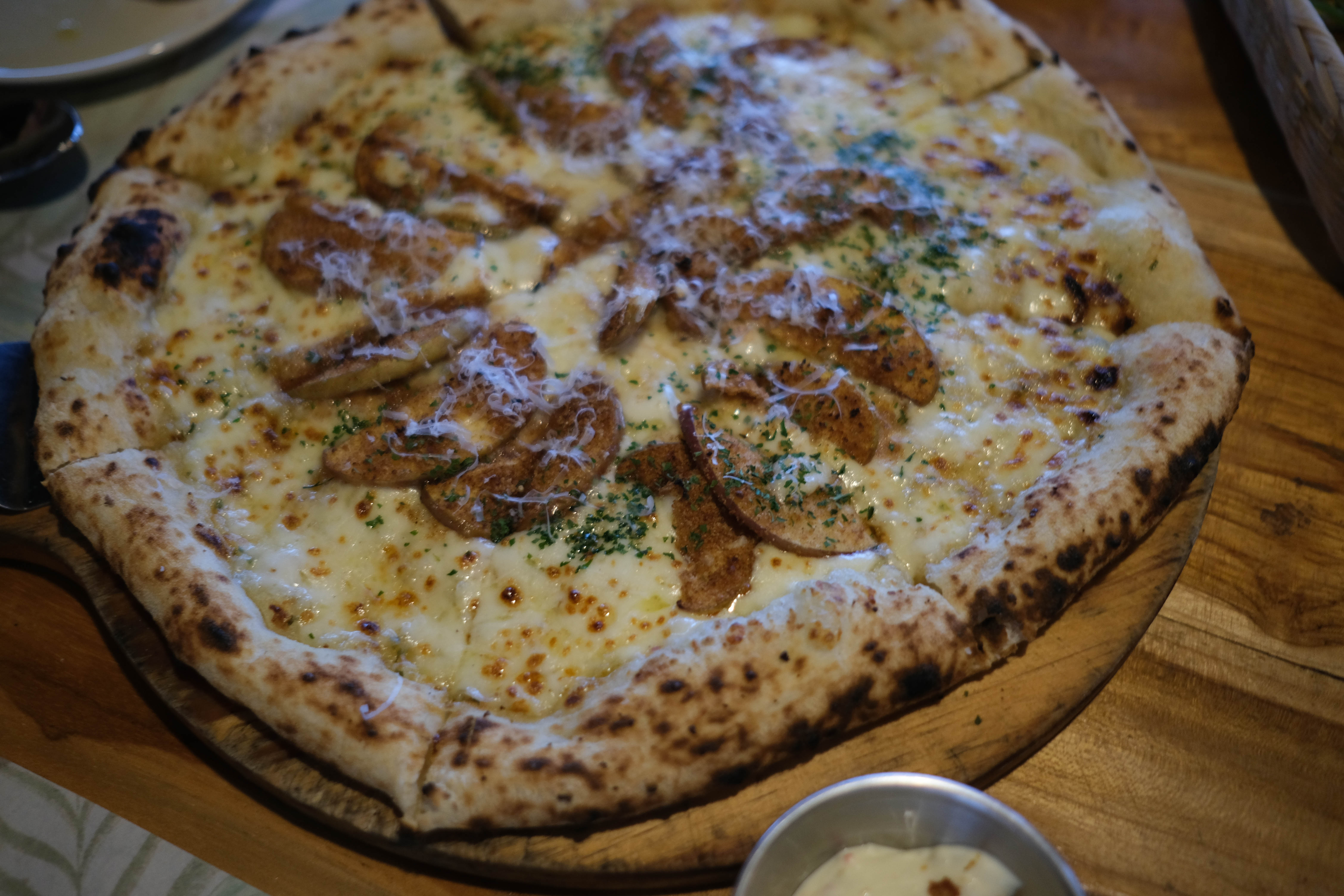 사과피자였는데 사과를 맛없는 걸 쓴건지...