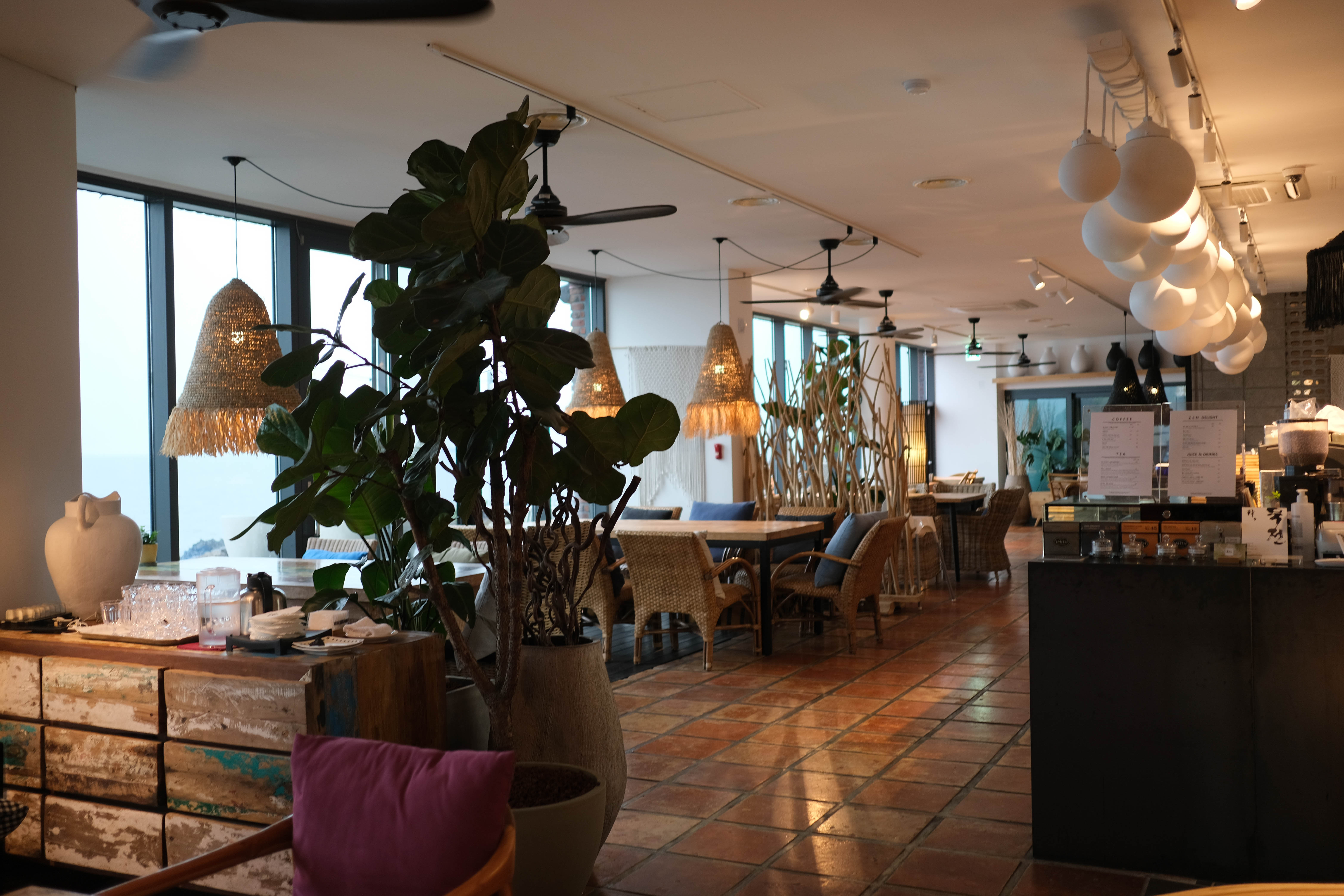 1층에는 카페와 리조트 체크인 하는 곳이 있었고 2층에 레스토랑이 있었다.