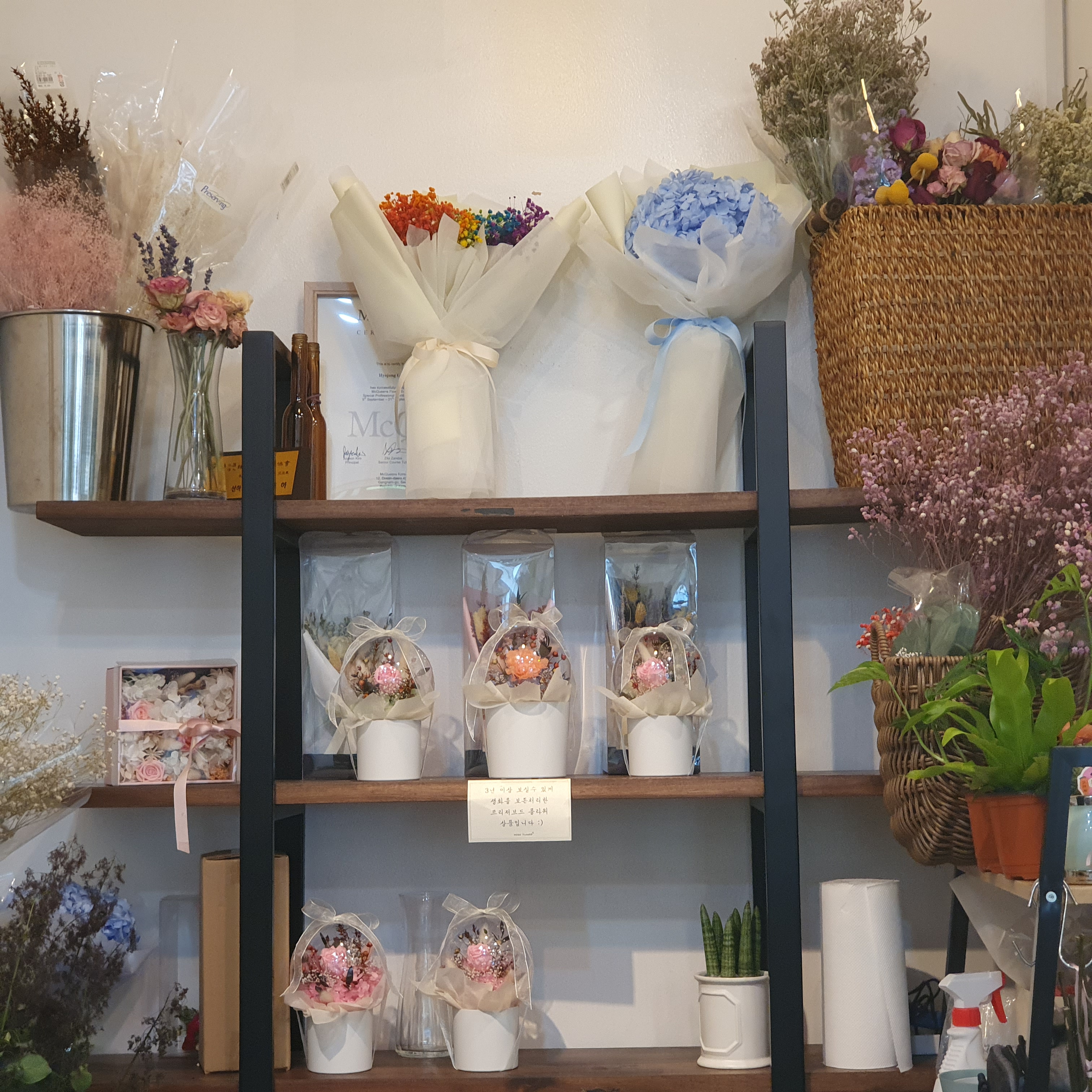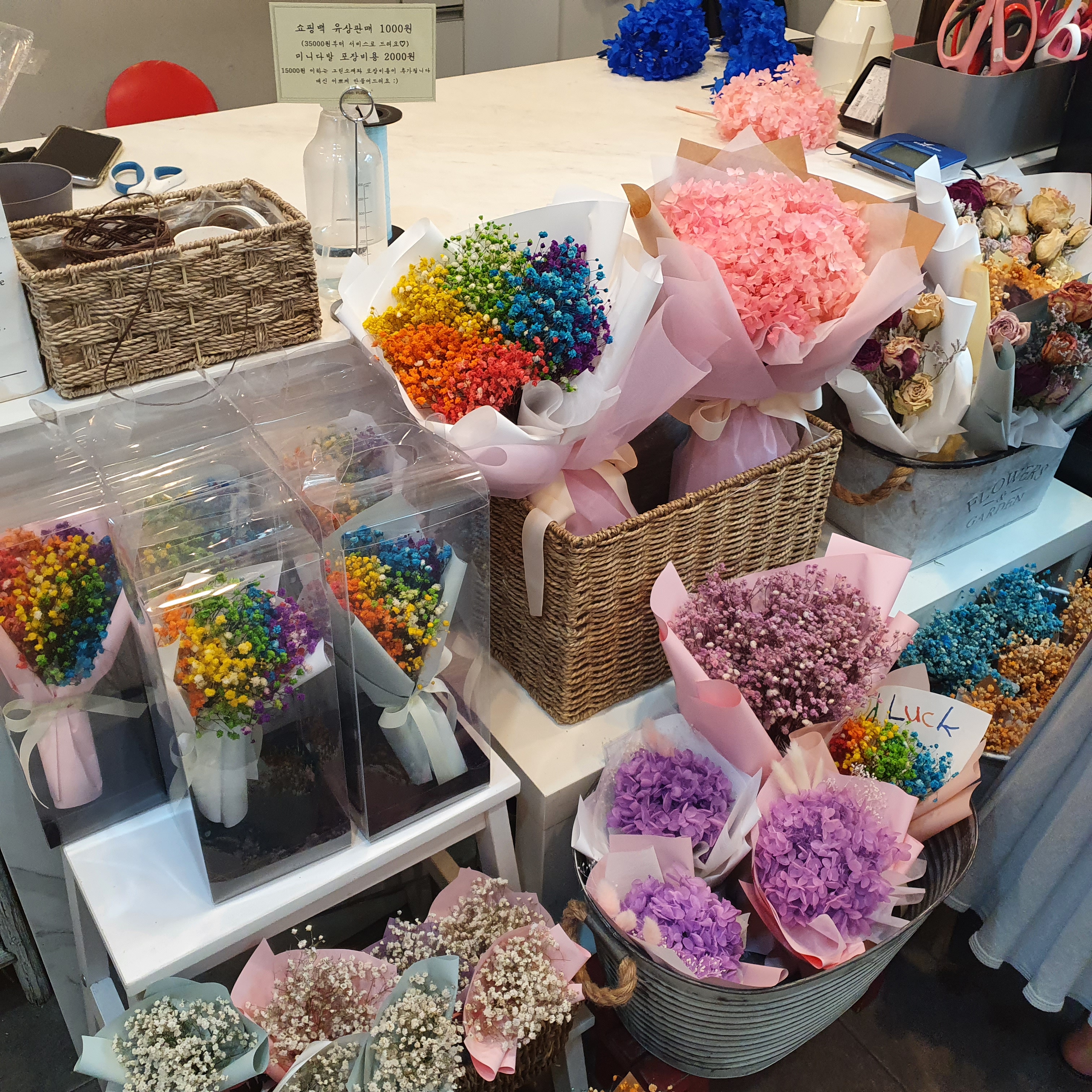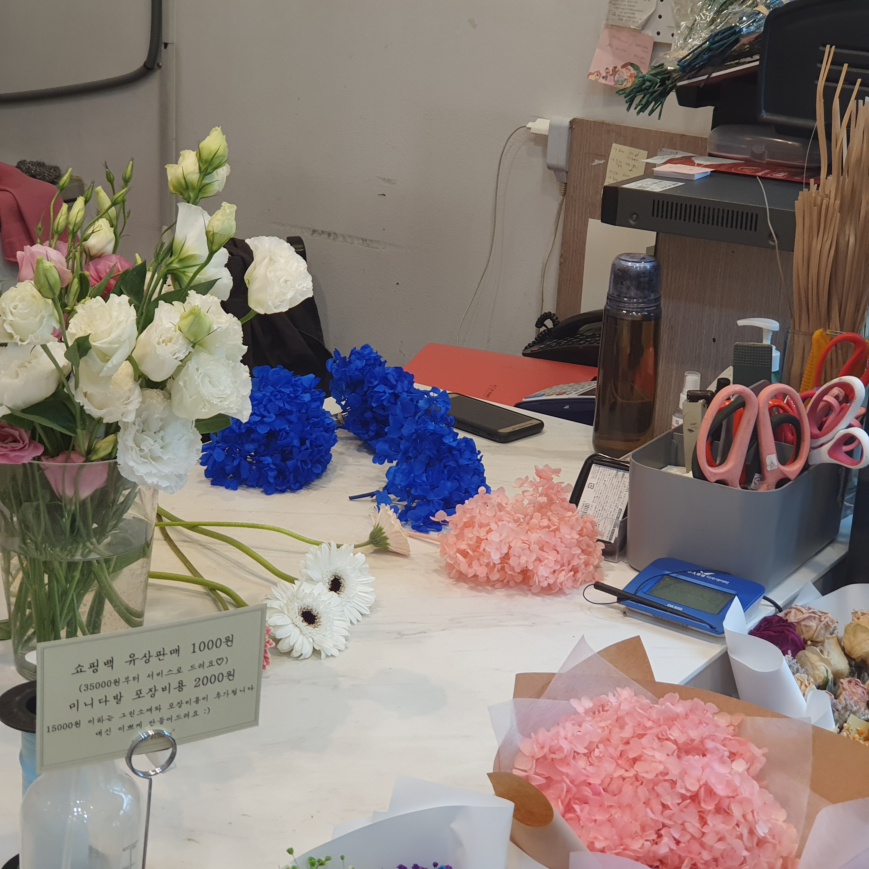 결혼한 동생 집들이 선물로 커플 잠옷을 샀는데 꽃도 사주고 싶어서 바로 보이는 꽃집에 들어갔다.