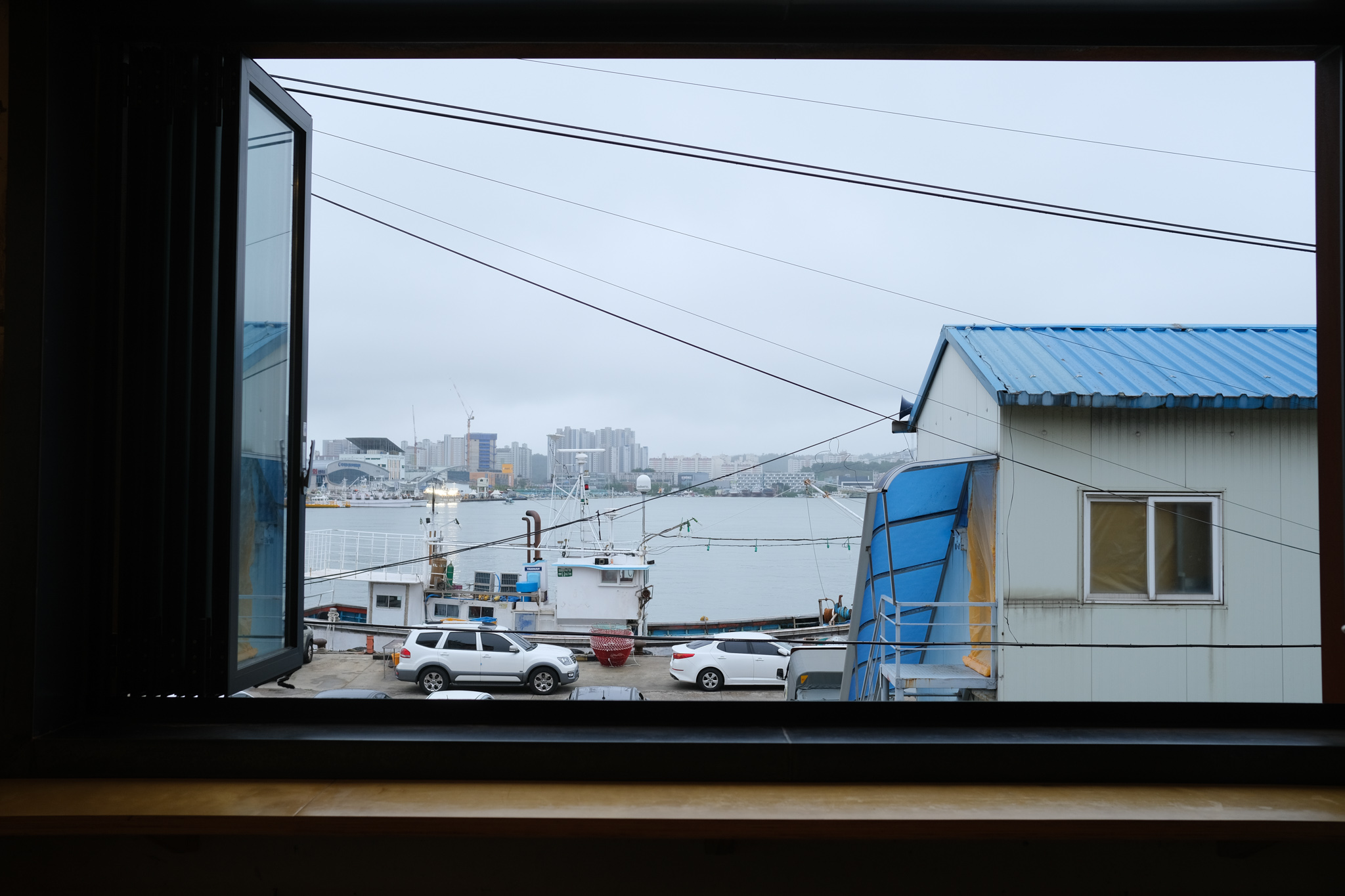 바다를 보면서 창문으로 살짝쿵 쳐들어오는 비를 느끼면서