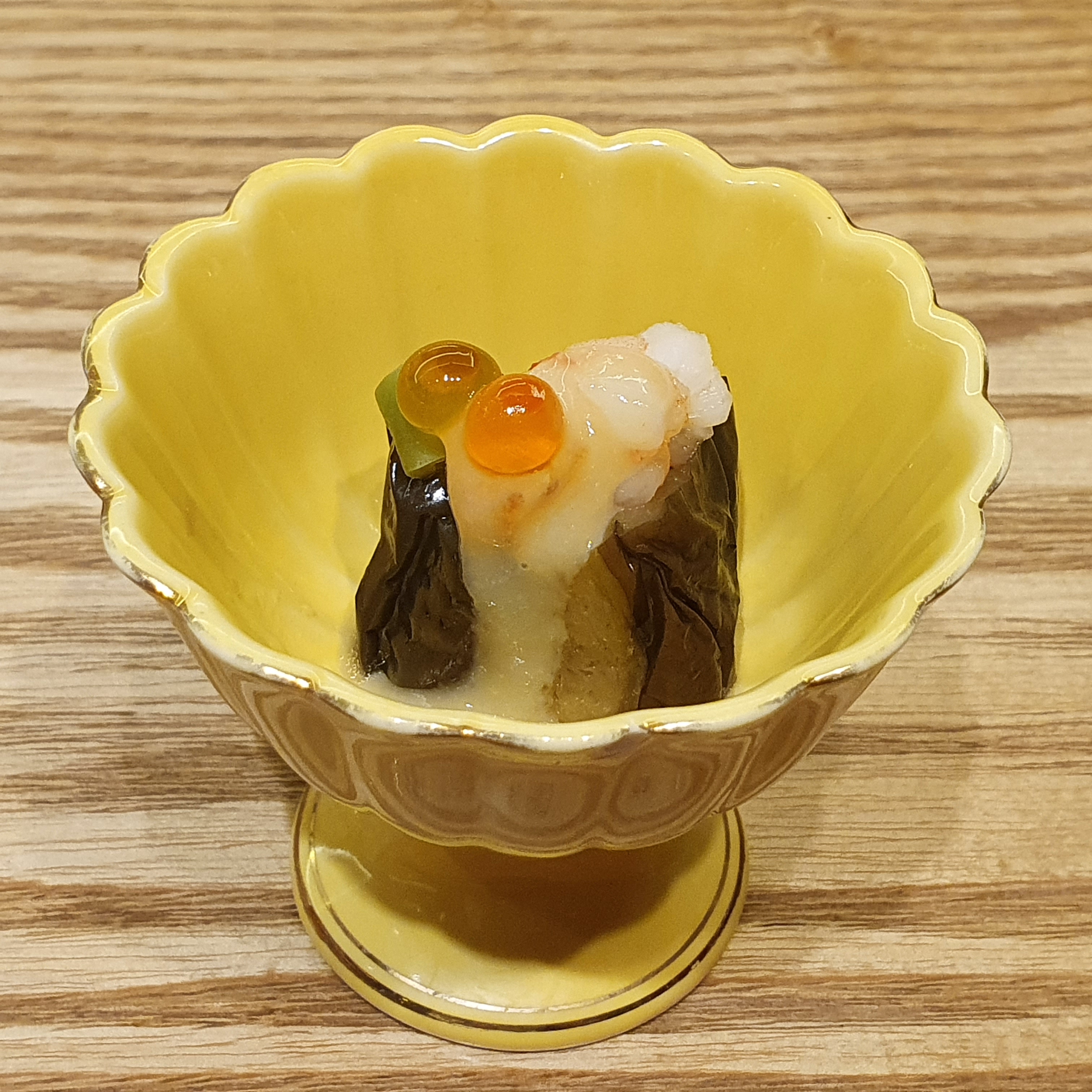 백해도산 가리비에 성게를 갈아서 만든 소스를 얹은 거라고 하셨다.