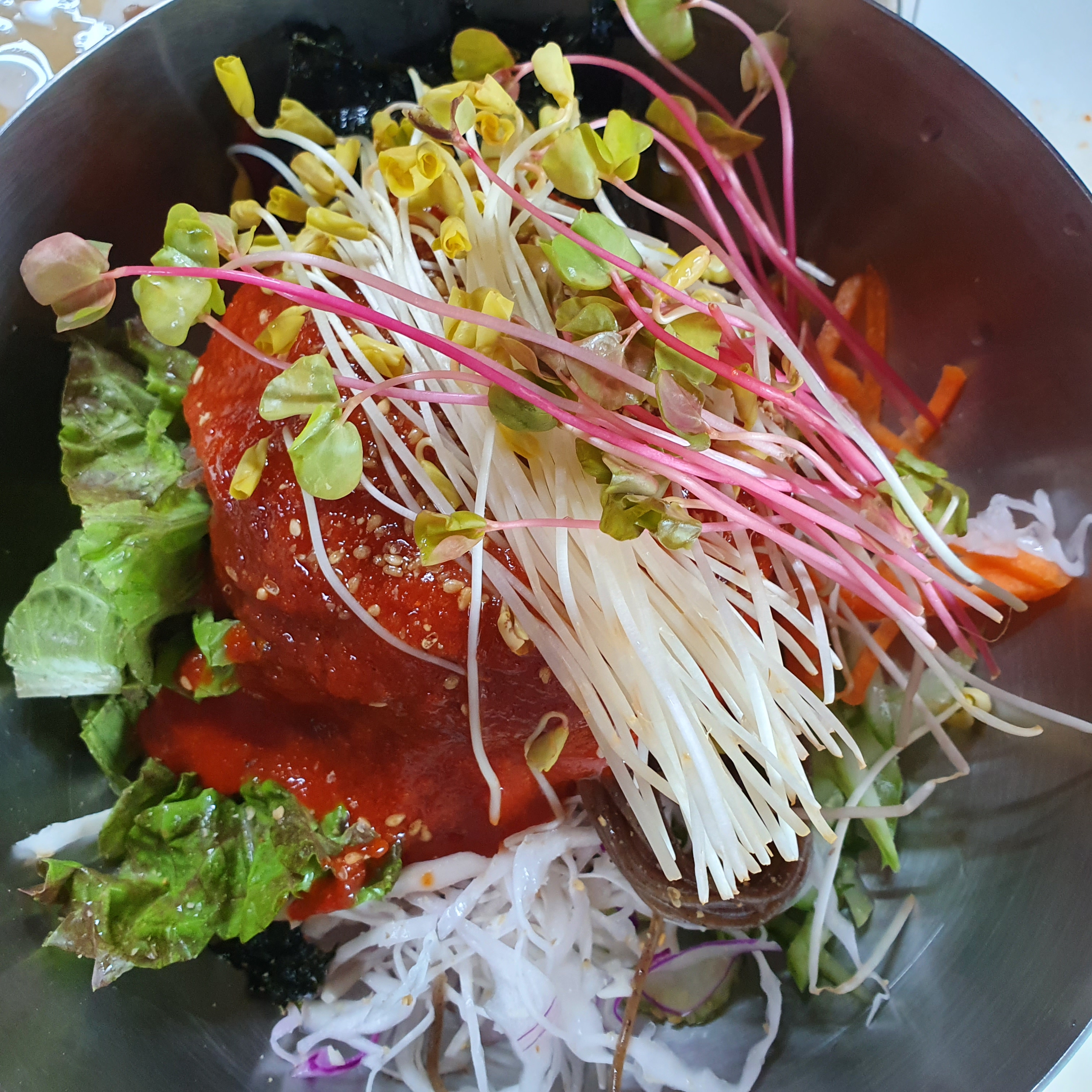 메밀 새싹?이 올라가서 그런지 향이 독특했다.