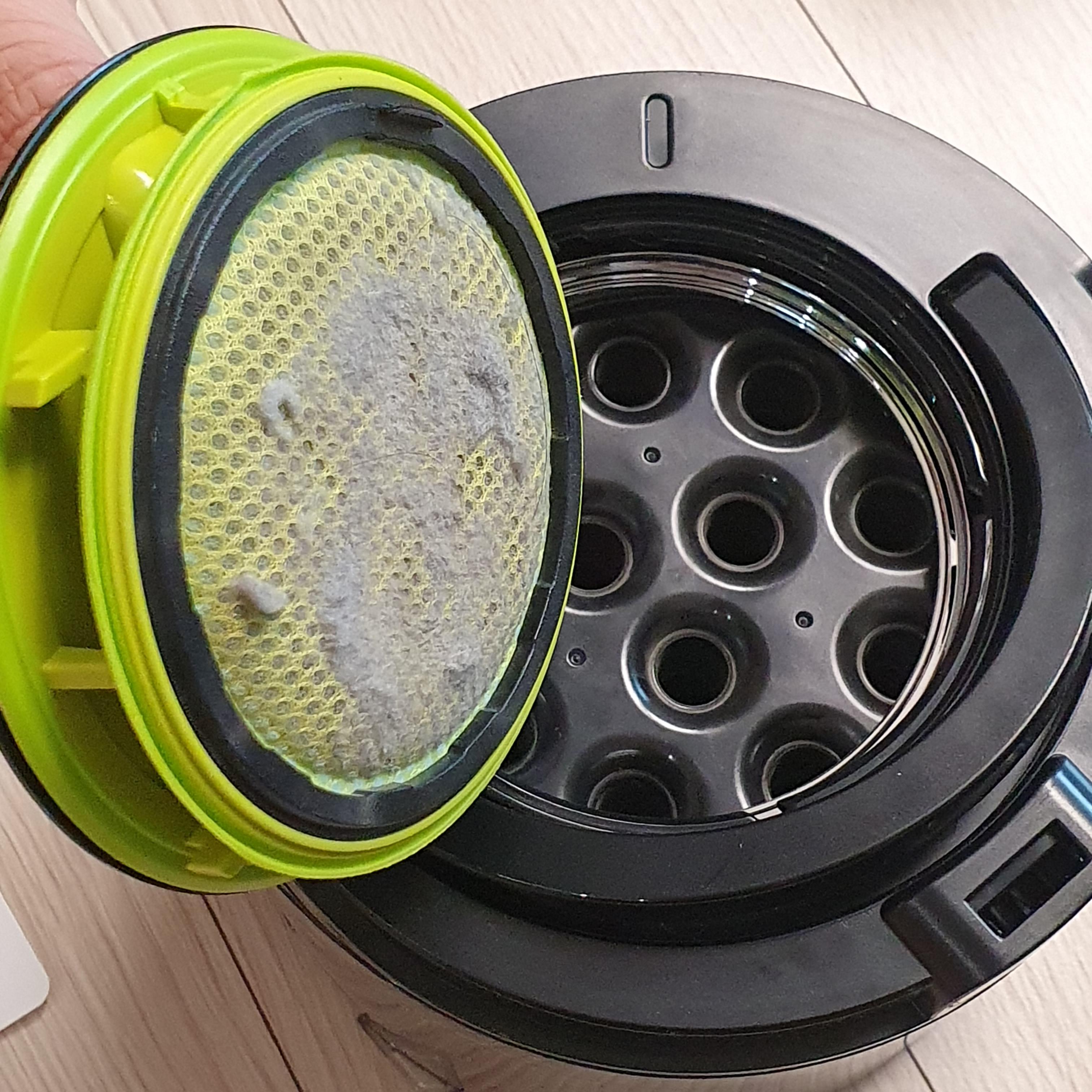 청소기 본체 안쪽에 있는 필터도 분리하여 빨아준다.