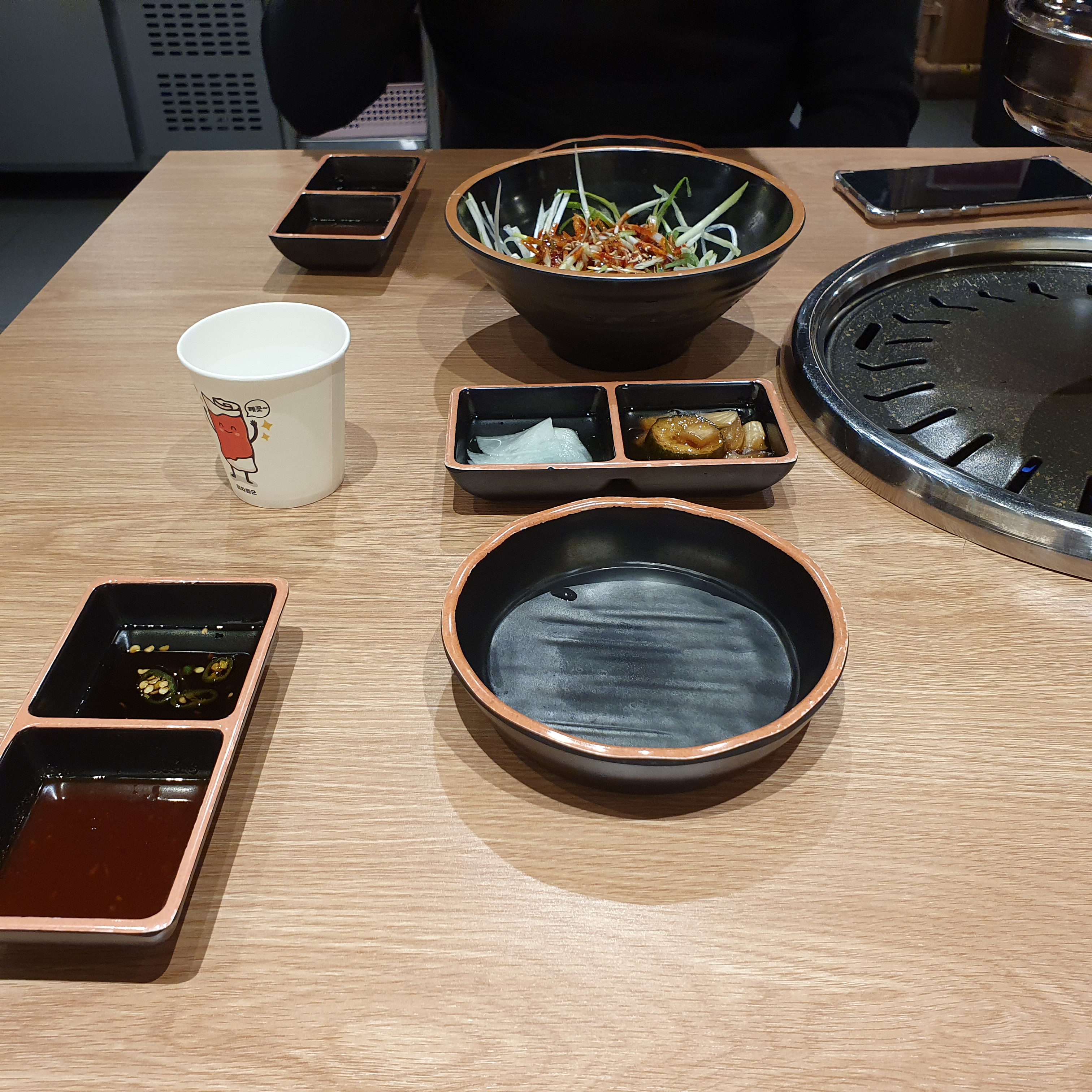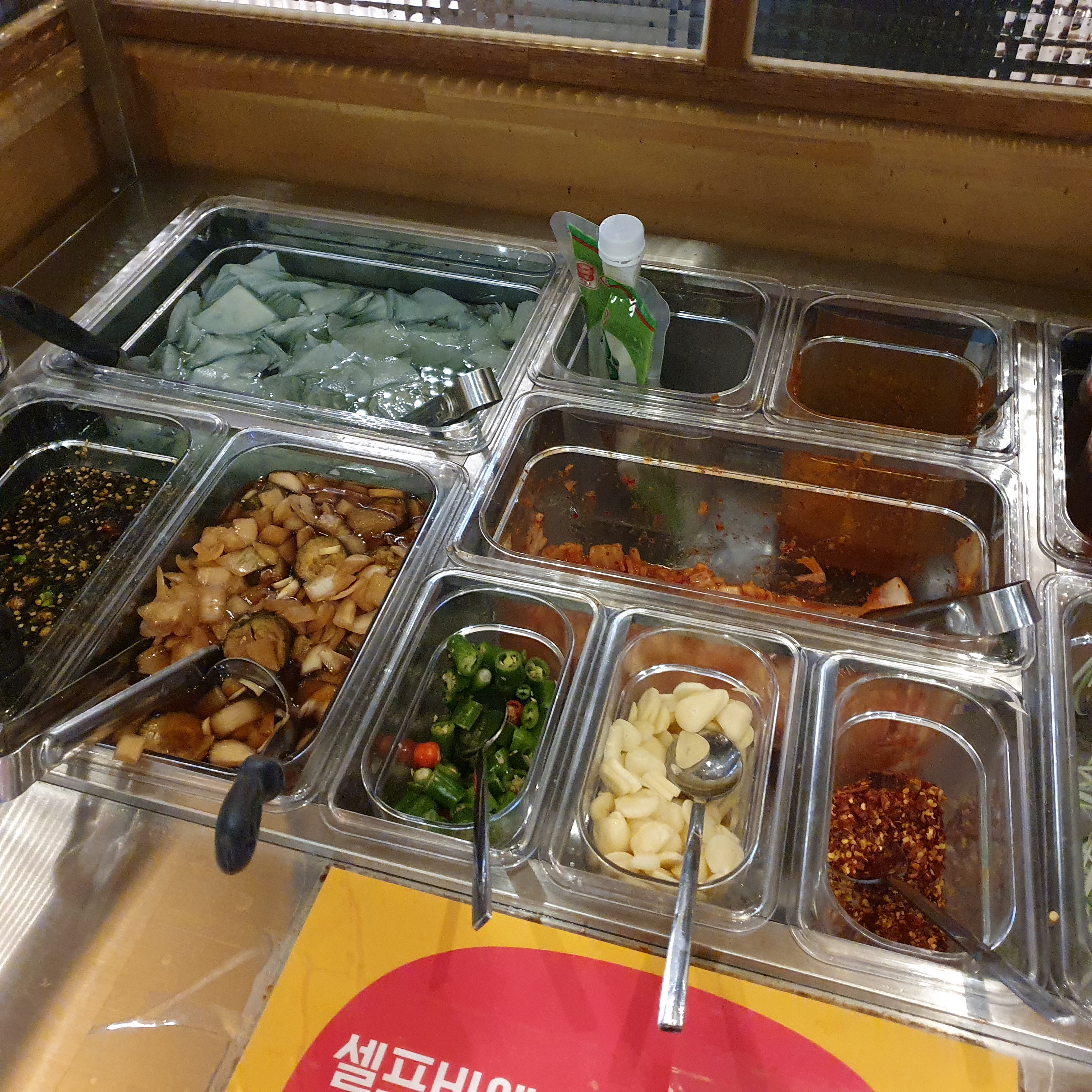 셀프바에서 리필 가능하고 김치, 마늘 등도 가져다 먹을 수 있었다.