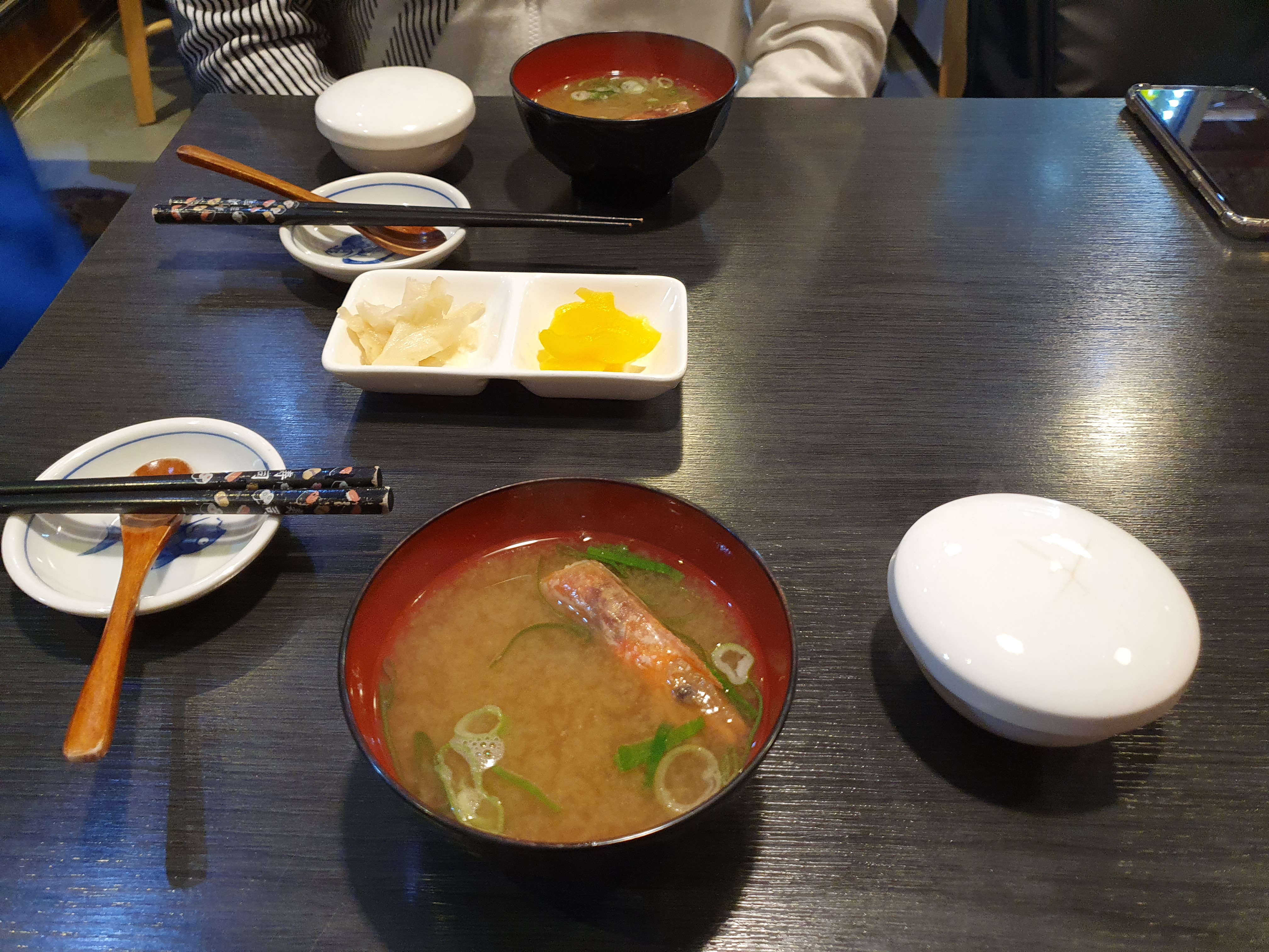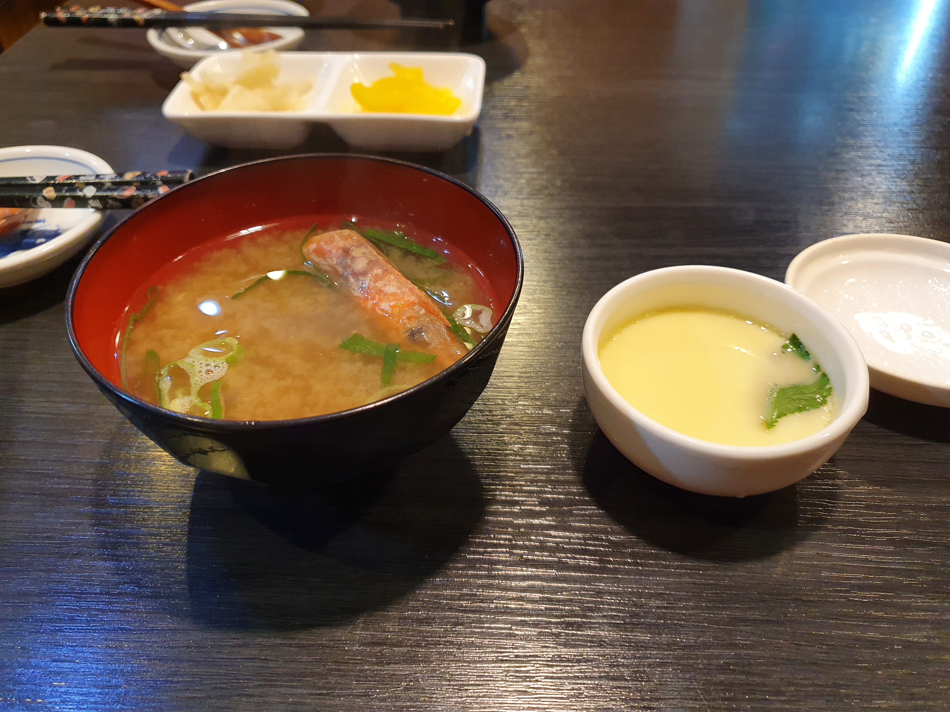 새우 머리가 들어간 된장국과 계란찜이 나왔다.