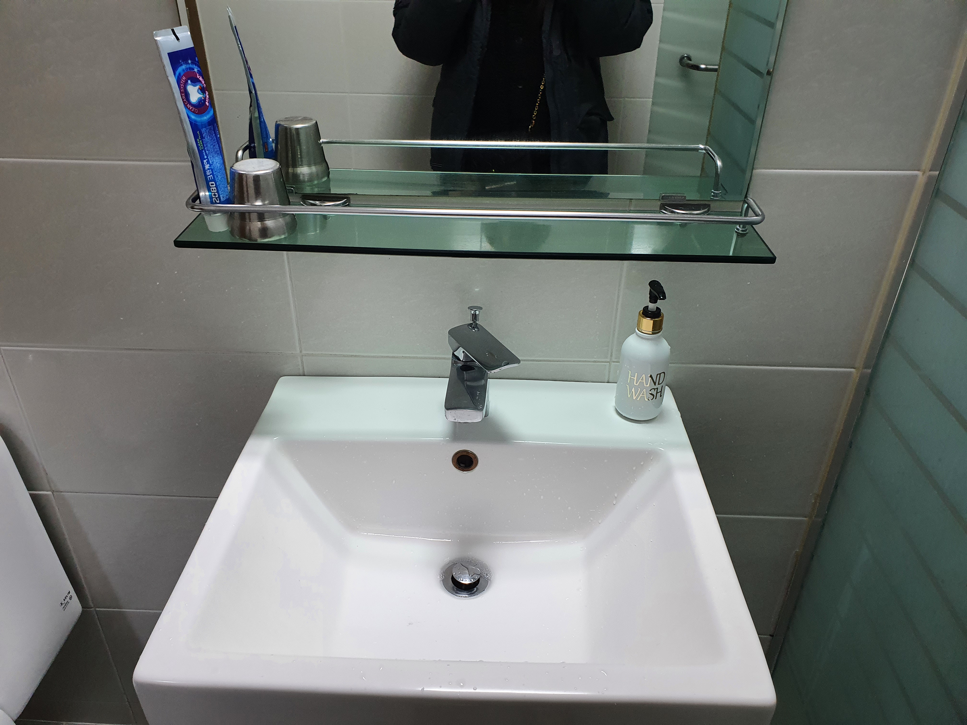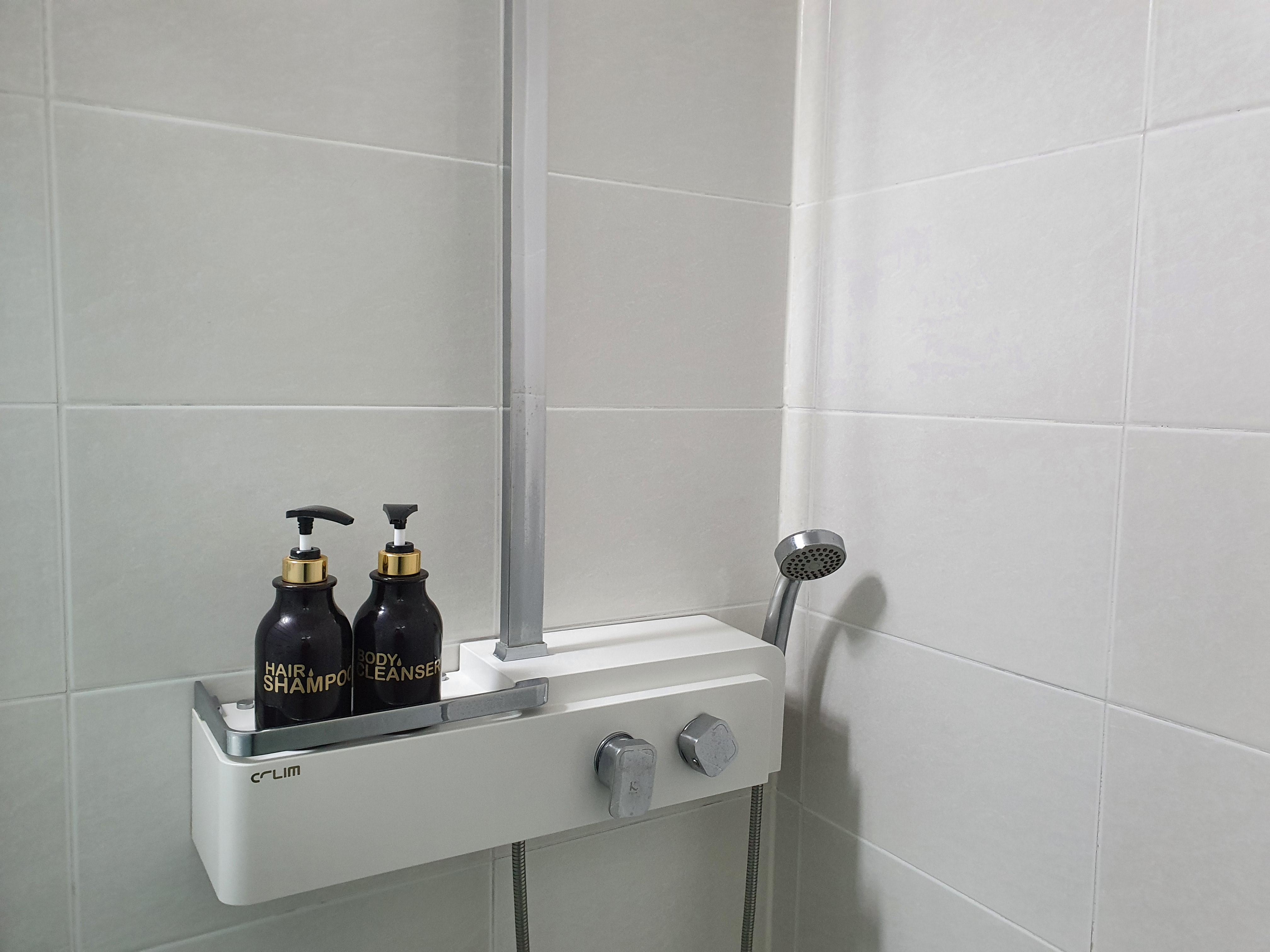 화장실에는 샴푸랑 바디 클렌져가 있었다.
