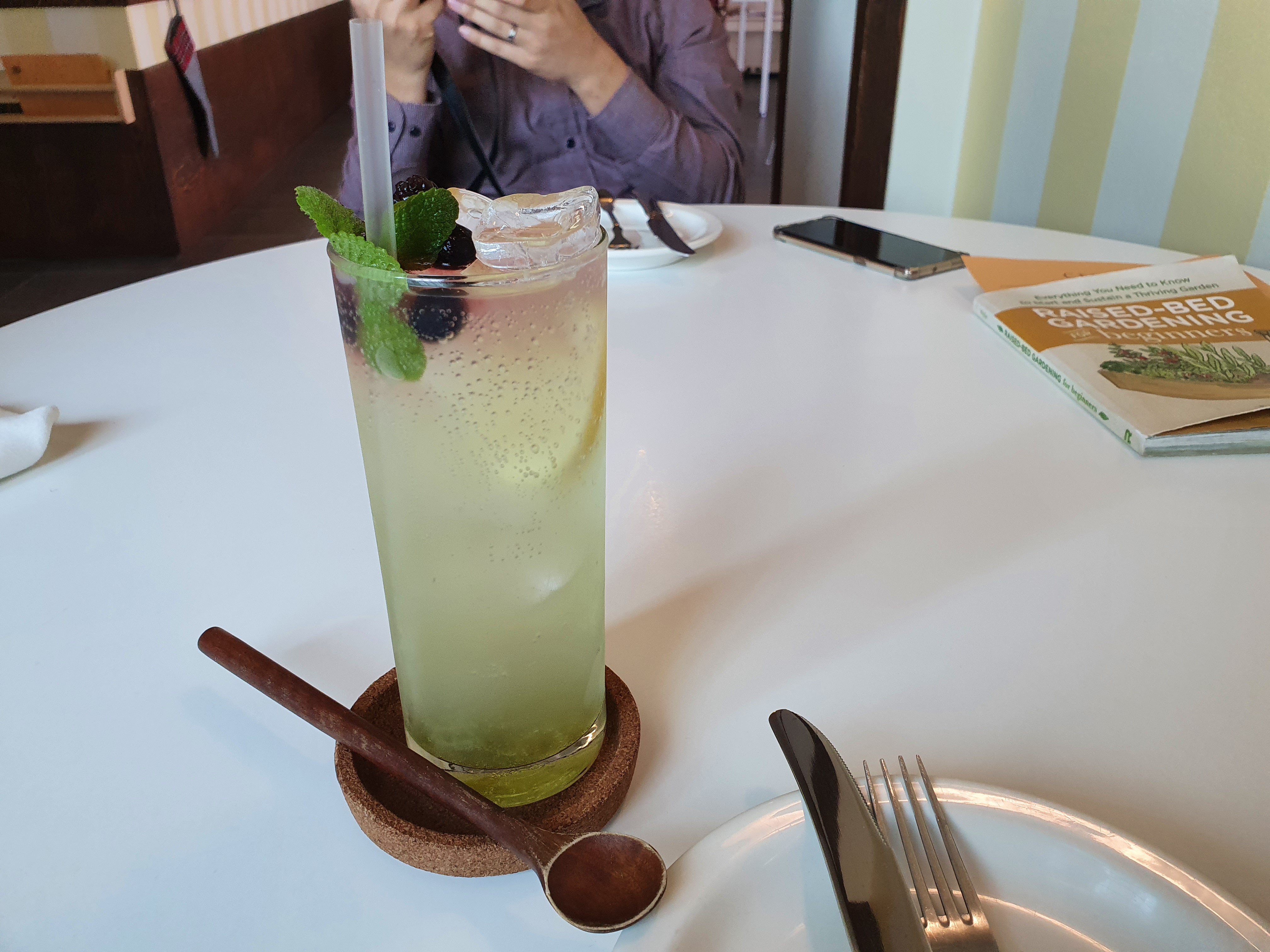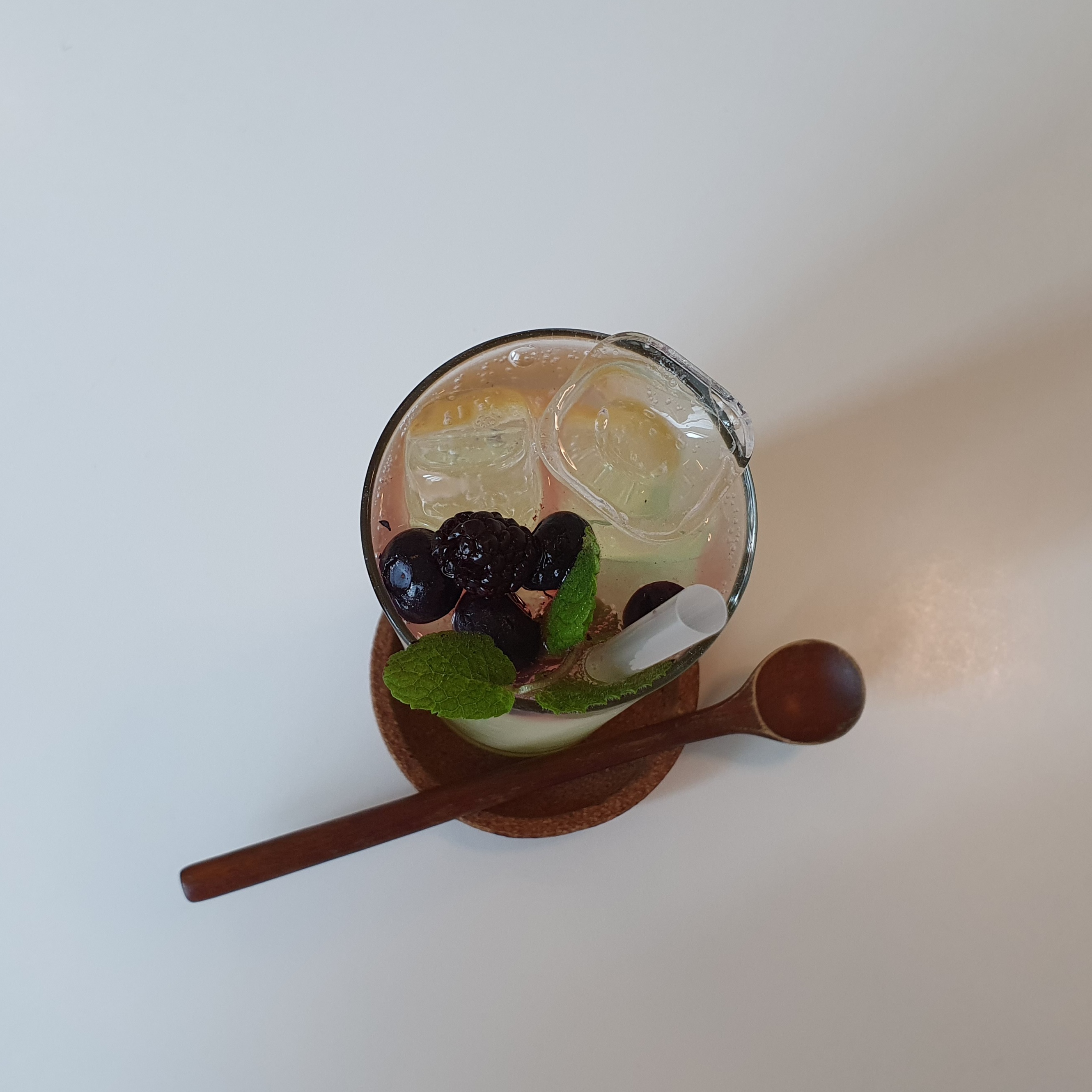 청포도 에이드를 주문했는데 허브와 블루베리와 레몬이 올라가 있다.