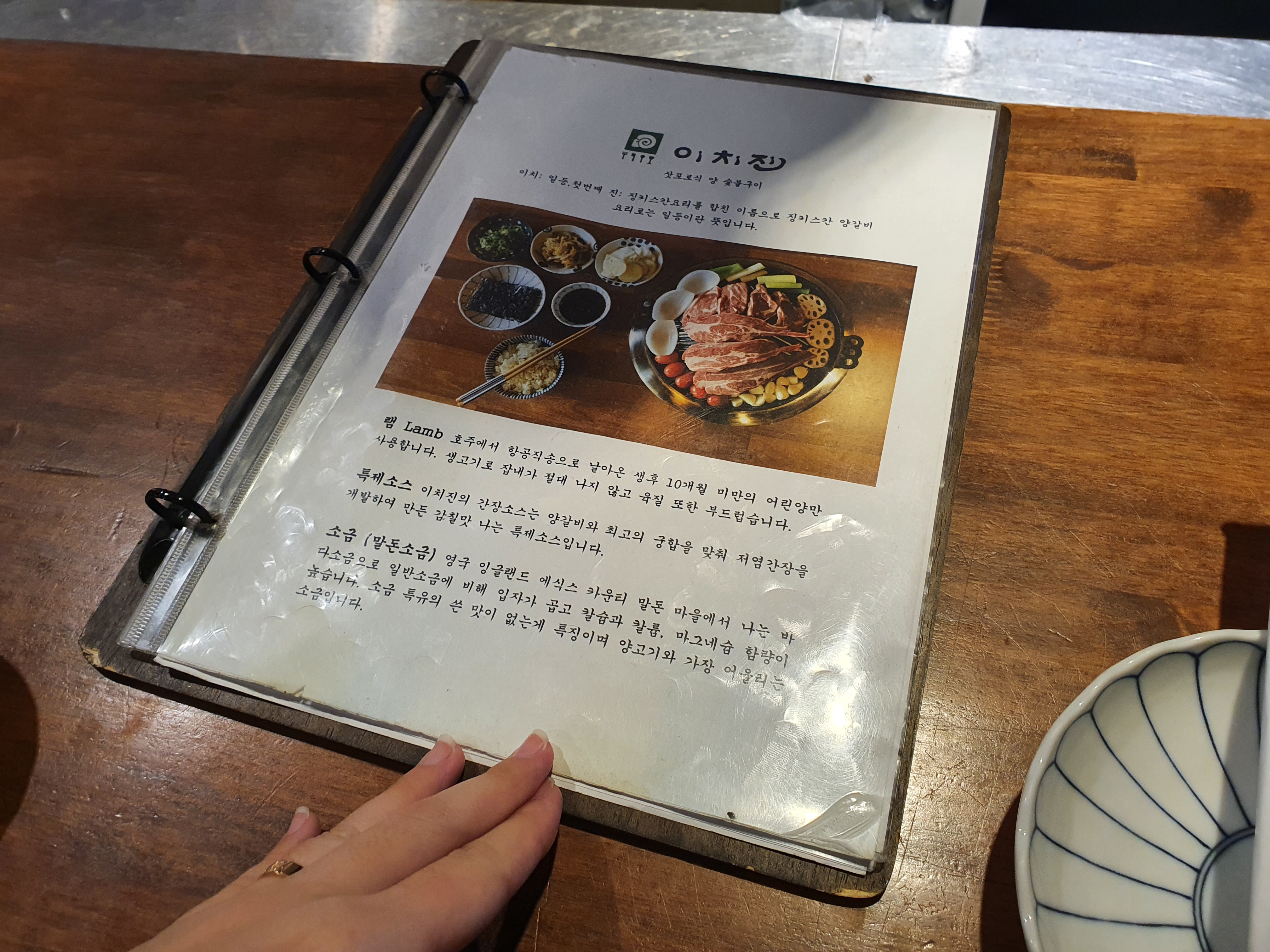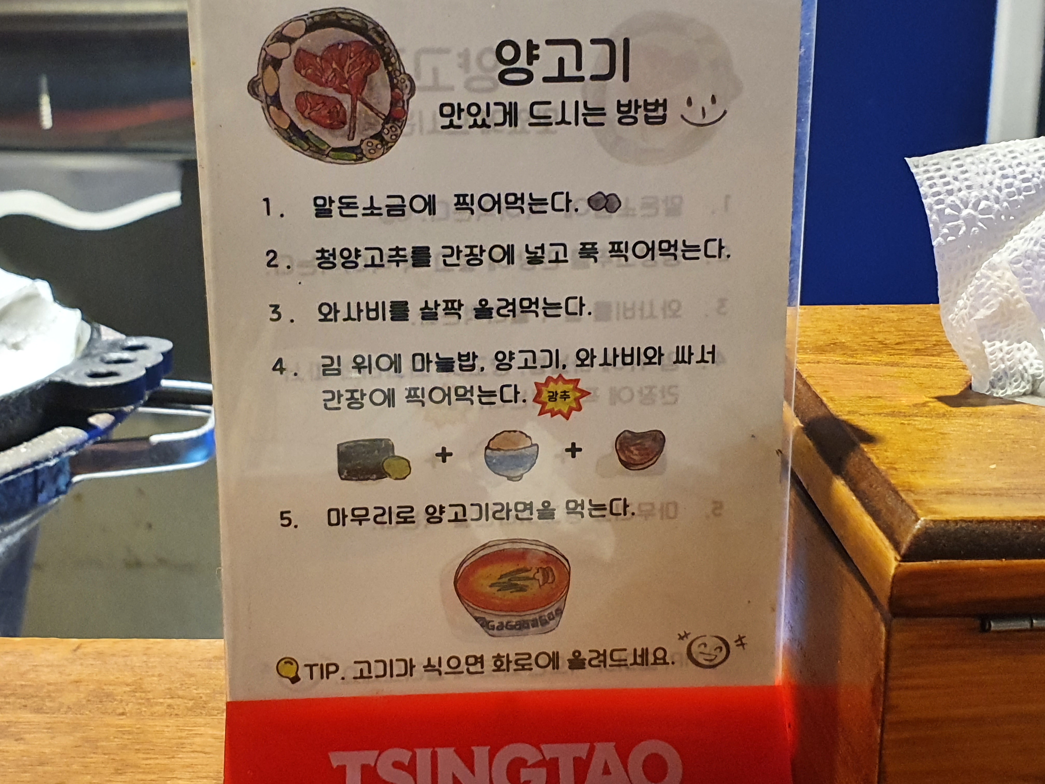 사장님께서 고기를 구우시는 사이 앞에 놓여진 양고기 맛있게 먹는 법을 정독했다.