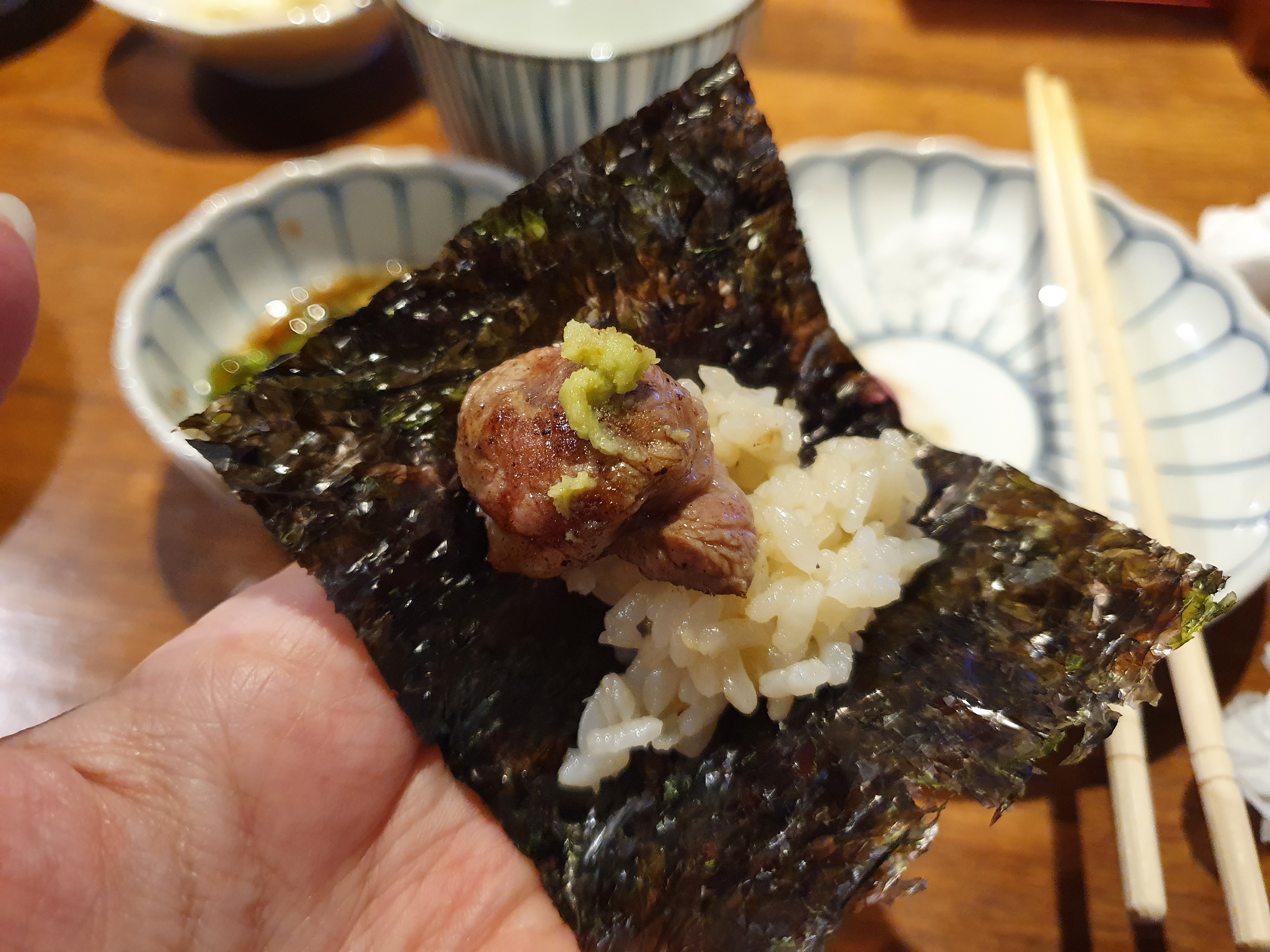 와사비에 찍어 먹기도 하고, 소금에 찍어먹기도 하고, 간장+청양고추랑 먹기도 하고, 마늘밥과 함께 김에 싸먹기도 했다.