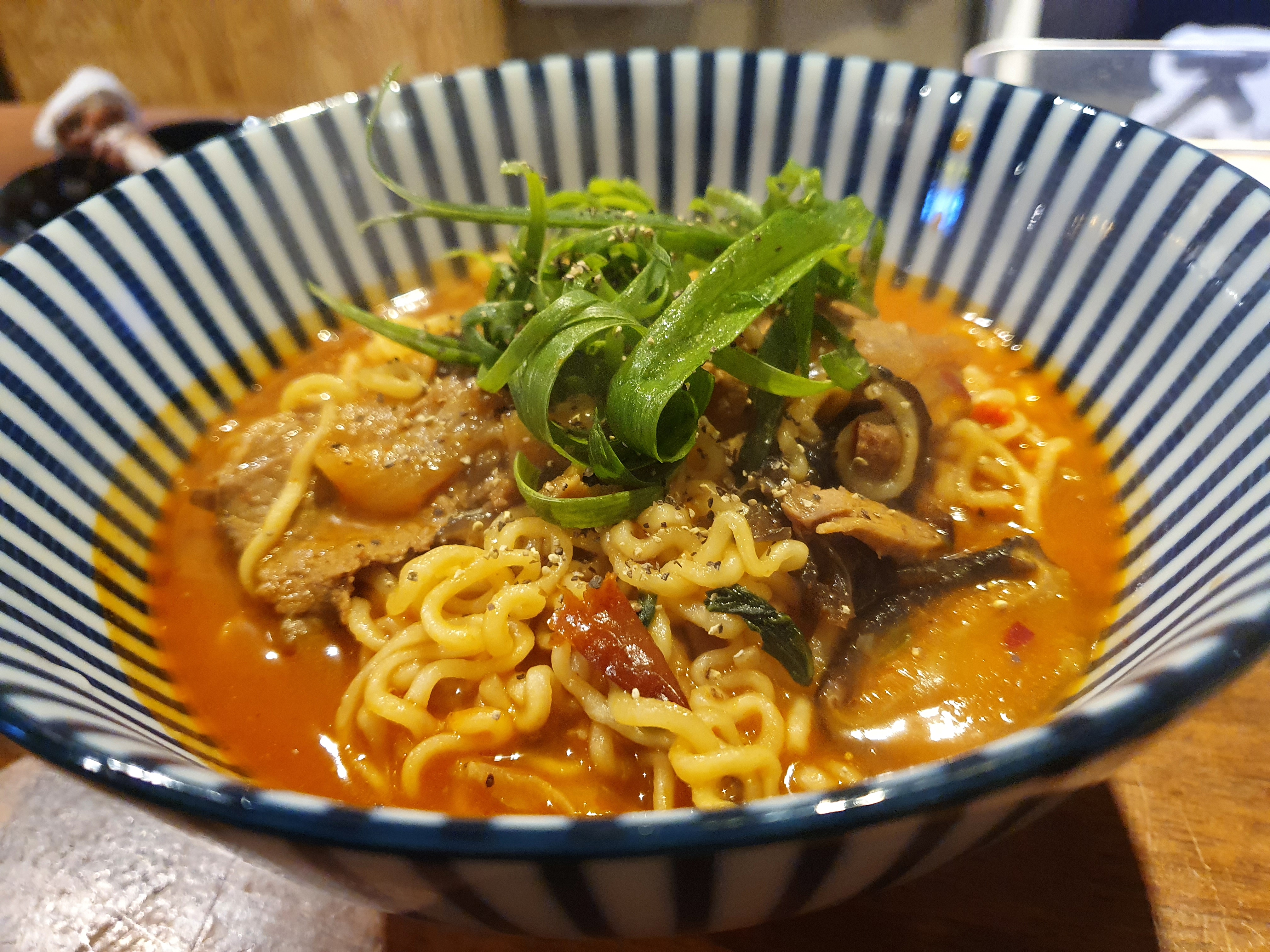 배불렀지만 라면도 맛보고 싶어서 라면까지 주문했다.